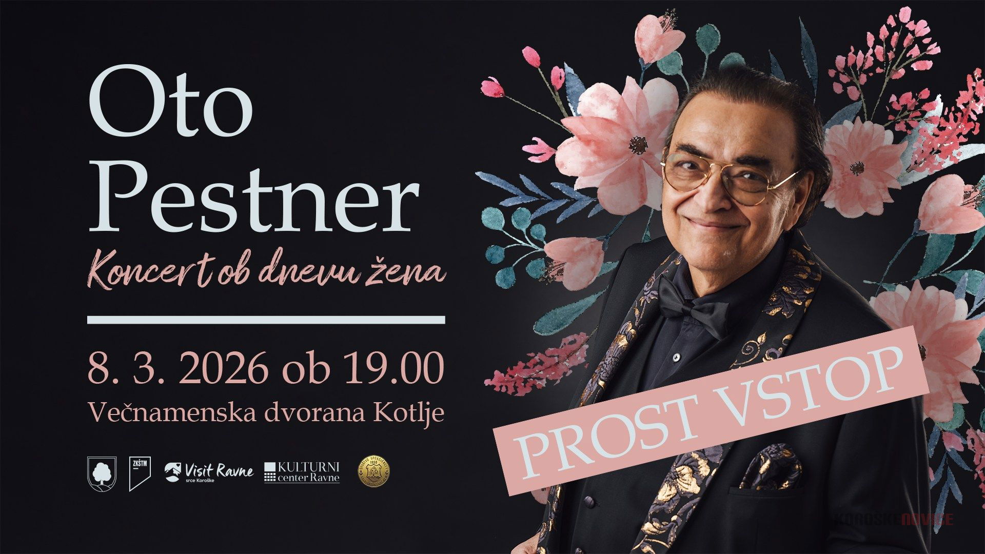 Občina Ravne na Koroškem, ZKŠTM Ravne, ravensko Društvo upokojencev za vse dame v Večnamenski dvorani Kotlje letos pripravlja brezplačen koncert legendarnega Ota Pestnerja.