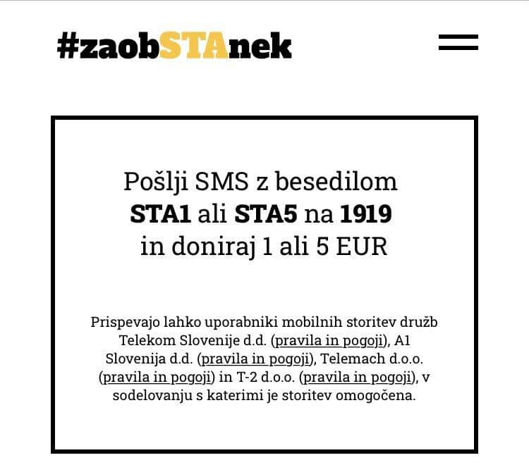 Sredstva za financiranje STA se sedaj zbirajo v donatorski kampanji Za obSTAnek, začetek katere je danes naznanilo Društvo novinarjev Slovenije (DNS) s prijatelji STA. Tako želijo zagotovili obstoj profesionalnega, neodvisnega in nepristranskega javnega servisa STA. Opozorili so, da skoraj 90 zaposlenim na STA v skrajnem primeru grozi izguba službe, mediji pa bodo ostali brez izjemno pomembnega vira preverjenih in verodostojnih informacij, in to v letu, ko svetovni dan svobode medijev v ospredje postavlja informacije kot javno dobrino.