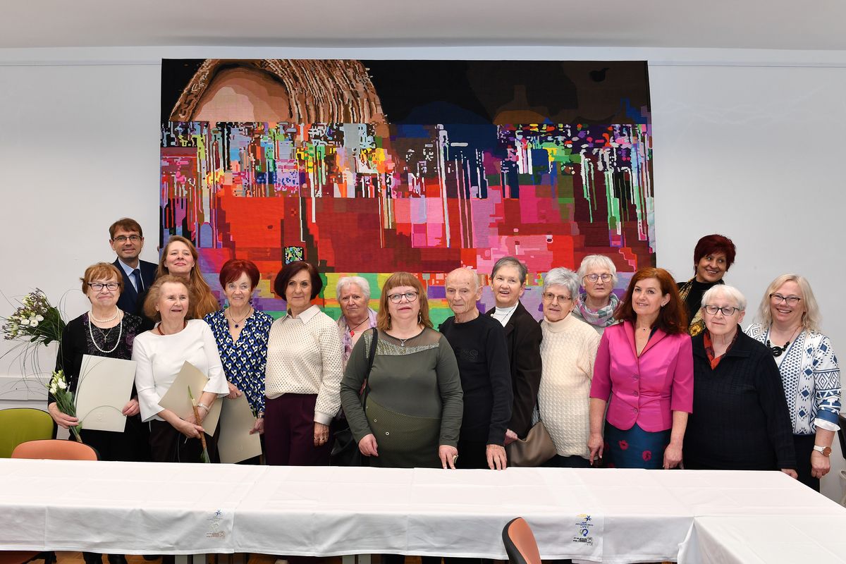 Župan dr. Tomaž Rožen je poudaril, da je gobelin izjemna umetnina, ki je stkala ne le tapiserijo, pač pa tudi prijateljstvo med generacijsko pestrostjo ustvarjalk in nato skupaj s predsednico društva, Uršulo Vezonik, umetnicam podelili priložnostne spominske zahvalne listine.