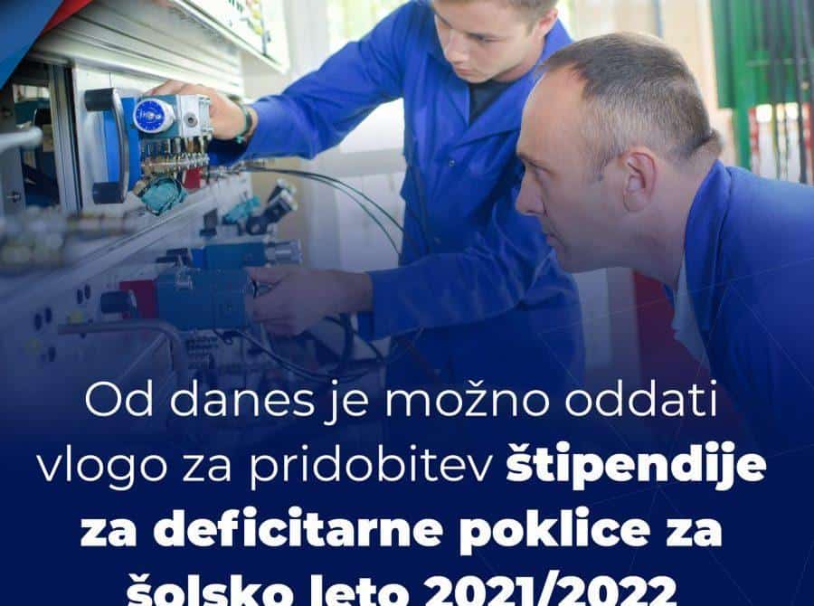 Dijaki, ki bodo v šolskem letu 2021/2022 obiskovali 1. letnik srednjega poklicnega izobraževanja, lahko do vključno petka, 24. 9. 2021 oddajo vlogo za pridobitev štipendije za deficitarne poklice.