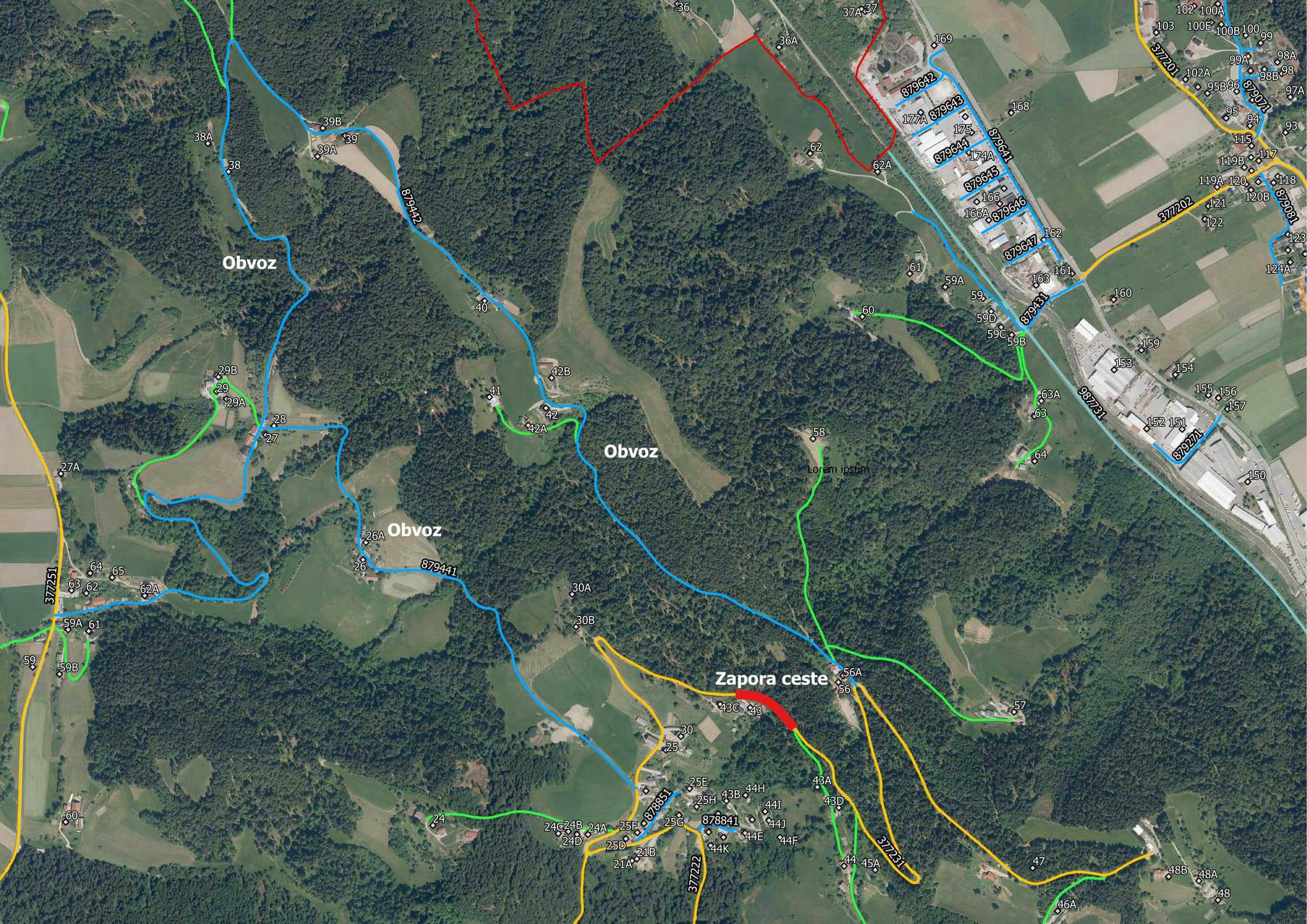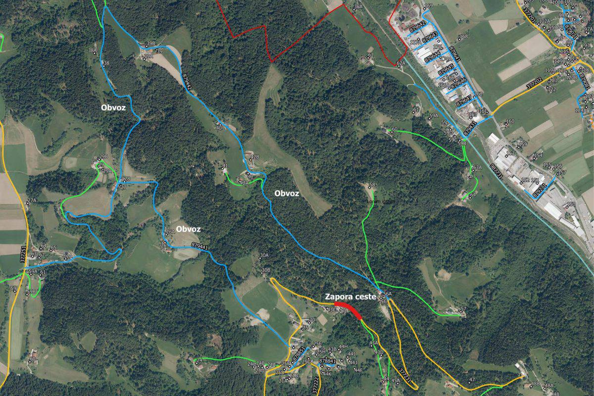 Za obvoz bo možno uporabiti javne poti JP 879441 (Grobelnik – Kolar) in JP 879442 (Leder - Encl - Štruc - S. kapela).