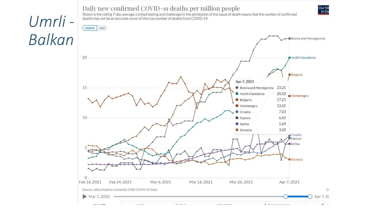 Slovenija je po številu umrlih na milijon prebivalcev zelo uspešna v primerjavi z državami Balkana, je še dejal Krek.