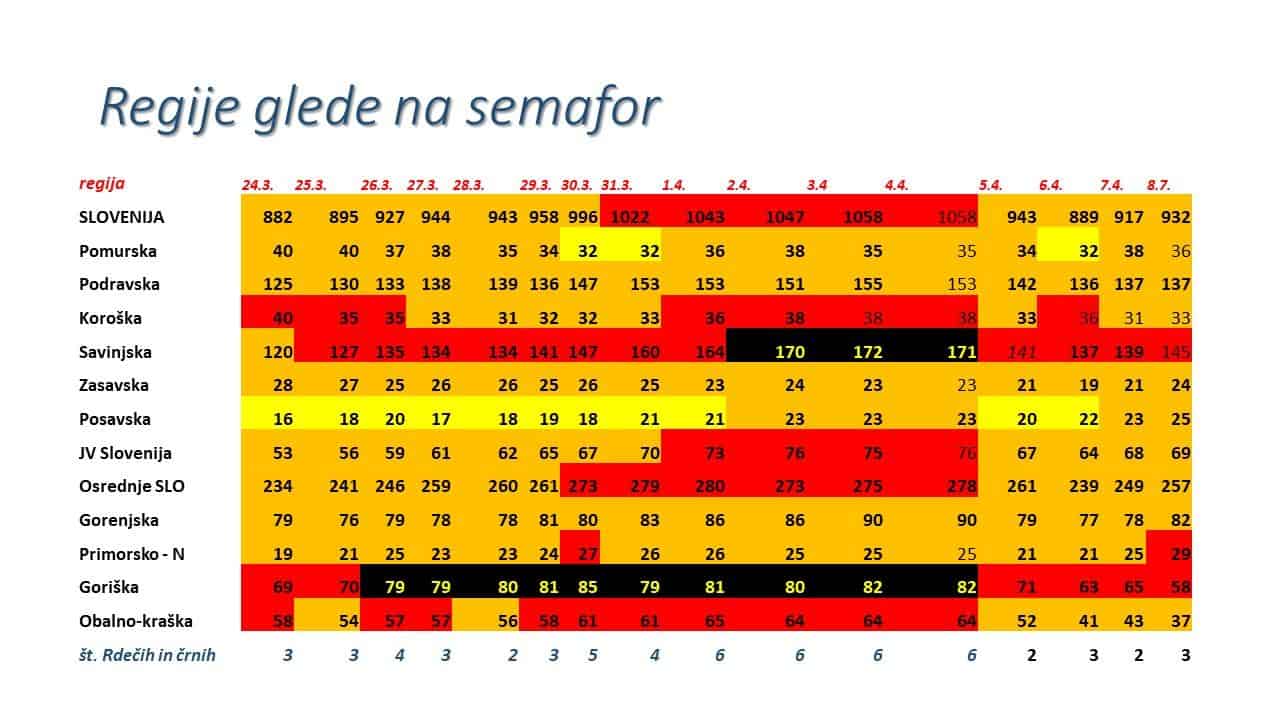 Začetek veljavnosti semaforja z 12. aprilom 2021, in sicer bo takrat veljalo to, kar velja za rdečo fazo za vso državo, ne glede na to, v kateri fazi bo posamezna regija.