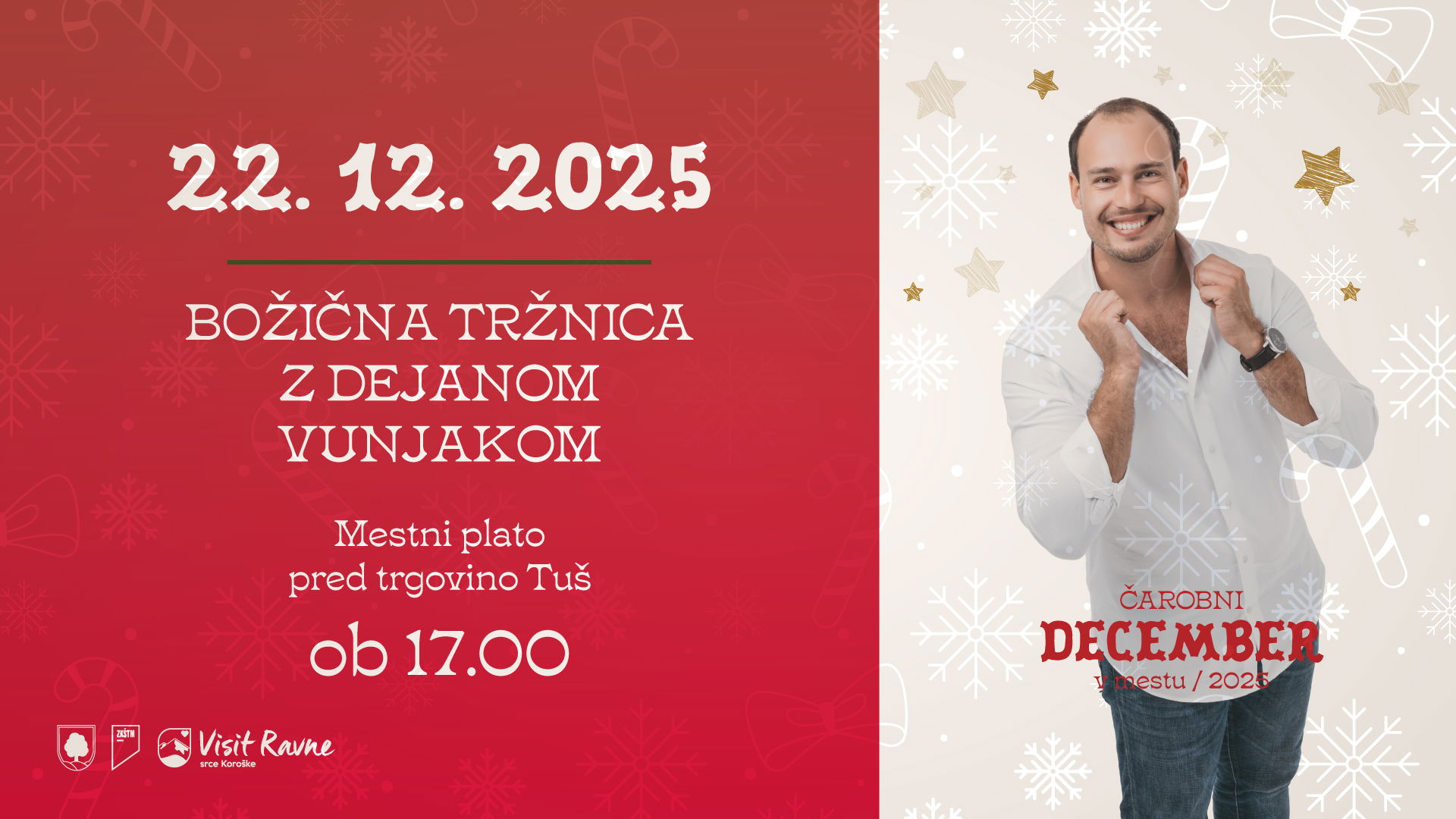 Nakupovanje pod lučkami si boste privoščili v ponedeljek, 22. decembra 2025, od 18. ure, ko nas bodo na mestnem platoju združili čar zimskih lučk, lokalne dobrote ter glasbeni nastop priljubljenega pevca Dejana Vunjaka, ki bo s svojimi uspešnicami poskrbel za toplo, čarobno predpraznično vzdušje.