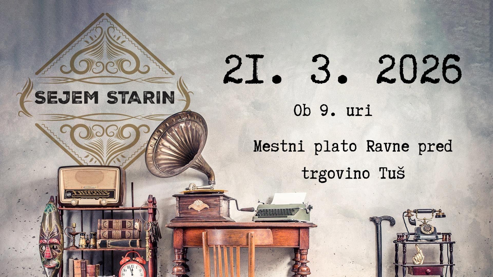 Tretja sobota v mesecu je na Mestnem platoju na Ravnah rezervirana za sejem starin. To zdaj že dobro vedo vsi ljubitelji preteklosti in zanimivih kosov. Prejšnji mesec je semju zagodlo vreme in je dogodek na mestnem platoju odpadel, tokrat pa bo tradicionalni sejem starin razveselil obiskovalce v soboto, 21. marca 2026, s pričetkom ob 9. uri.