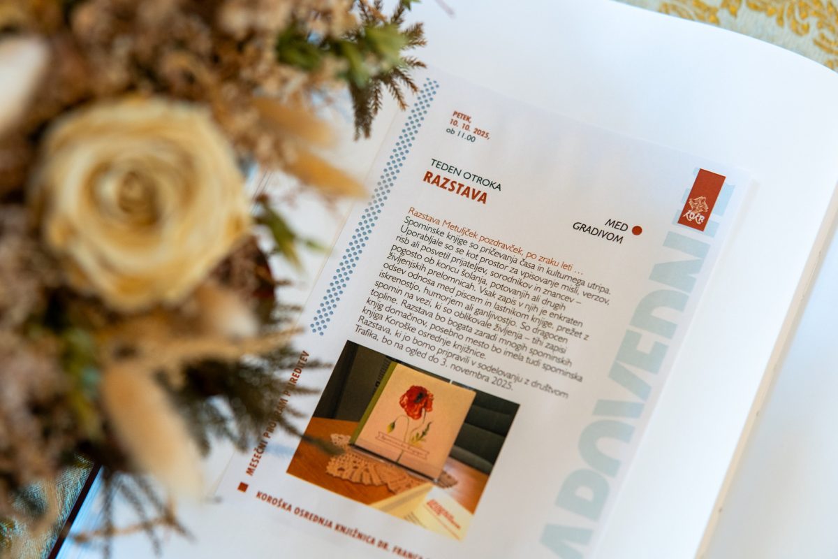Ob otvoritvi razstave so v petek, 10. oktobra 2025, pripravili bogat program, pridružilo pa se jim je društvo Trafika iz Maribora, soustvarjalci razstave ”Metuljček cekinček, po zraku leti…”. V imenu društva je zbrane nagovorila učiteljica Marjetka Berlič, ki spominske knjige raziskuje že desetletja in opominja na to, da je vredno prepoznati in živeti vrednote, ki so večne: ljubezen, sočutje, pristnost in prijaznost.