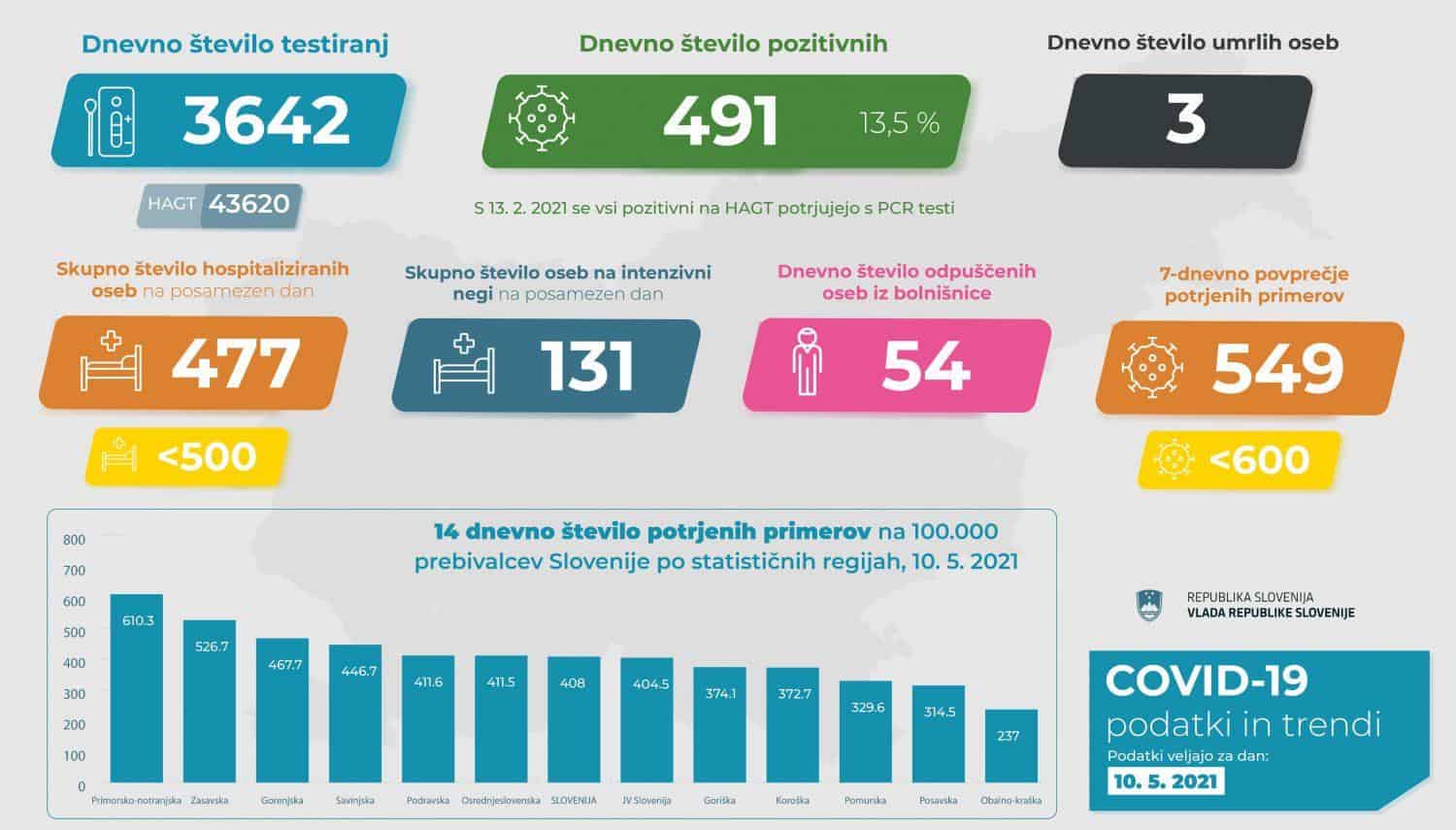 - Št. pozitivnih: 491 (13,5 %)