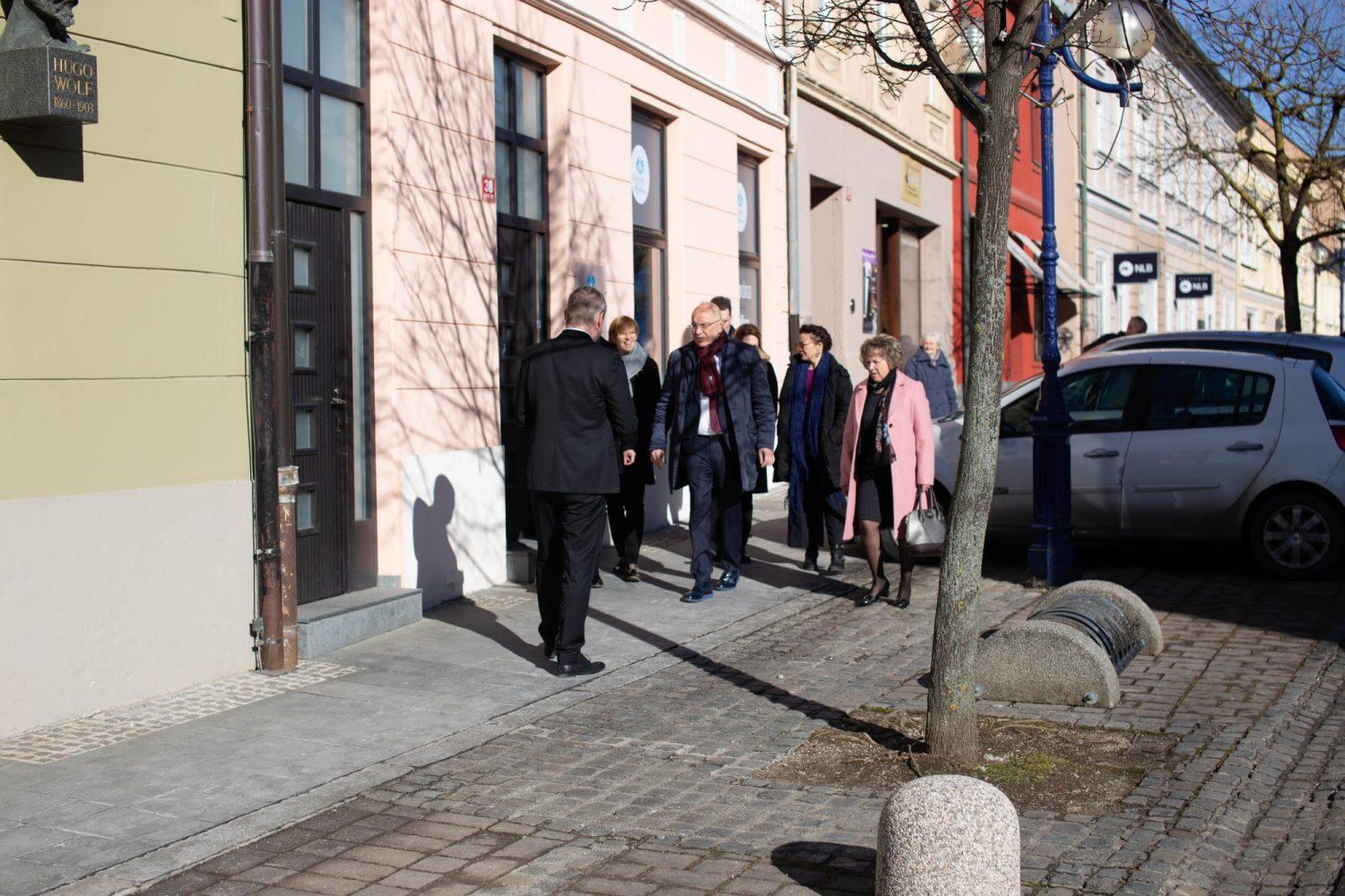 Ob današnjem uvodu v praznovanje Wolfovega leta sta se ministra sestala z županom Mestne občine Slovenj Gradec Tilnom Kluglerjem ter si ogledala mesto miru.