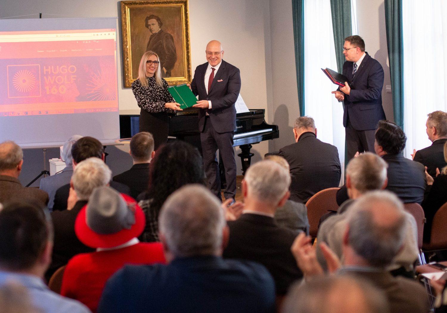 V sklopu Sosedskega dialoga Slovenija–Avstrija je Ministrstvo za kulturo leto 2020 razglasilo za jubilejno leto Huga Wolfa. Ob tej priložnosti je danes v Slovenj Gradcu potekala novinarska konferenca, na kateri so predstavili poštno znamko s podobo Huga Wolfa, celostno grafično podobo in program jubilejnega leta, ki se bo odvijal v Sloveniji in tujini.