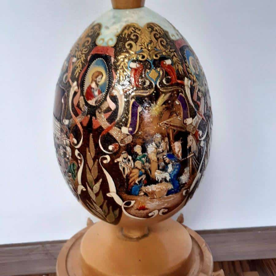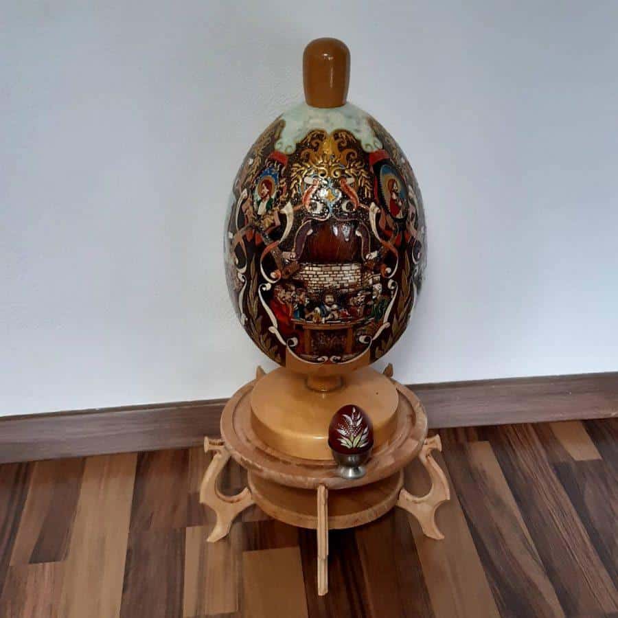 Ne ustvarja pa le na kokošja jajca, ampak tudi prepeličja, nojeva, več kot 10 minut pa je zagotovo porabil za veliko leseno jajce, visoko več kot pol metra, vanjo pa je vgrajena 1,5 l velika steklenica, v katero je nalil žganje.