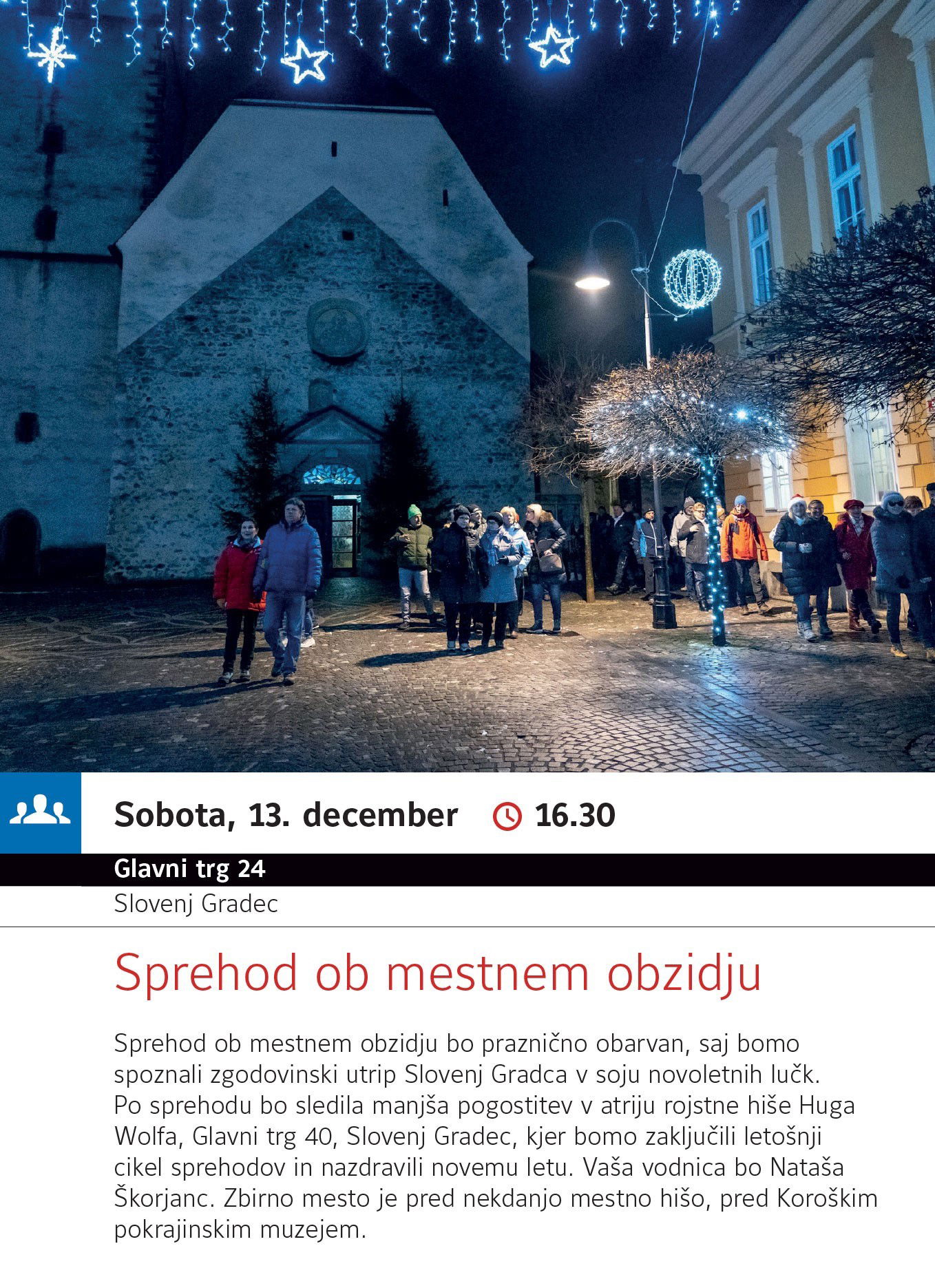 V okviru dogodkov Veselega decembra v mestu se boste v soboto, 13. decembra 2025, ob 16.30 uri lahko podali na sprehod ob mestnem obzidju, ki bo tokrat praznično obarvan.