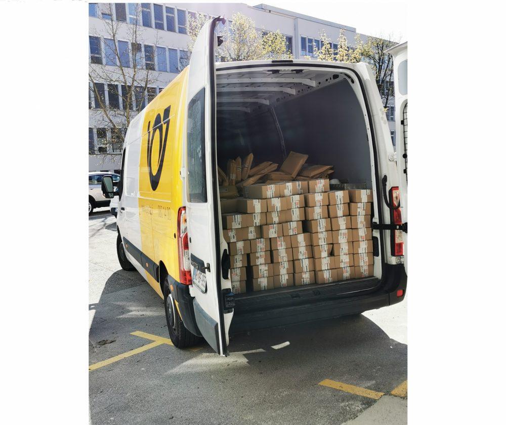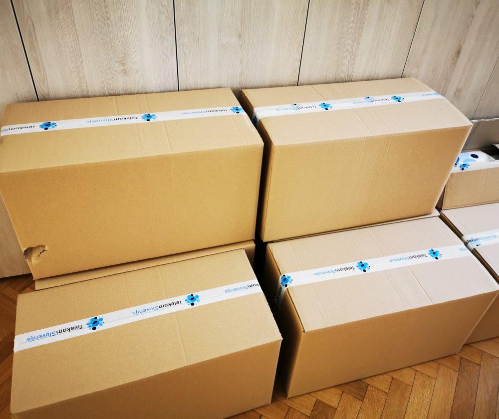 Pošta Slovenije je včeraj na sedežu Zavoda za šolstvo prevzela pakete, v katerih je bilo 172 tabličnih računalnikov in 482 modemov. Pošta Slovenije jih bo danes v dopoldanskih urah dostavila učencem in učenkam, so zapisali na ministrstvu za izobraževanje.