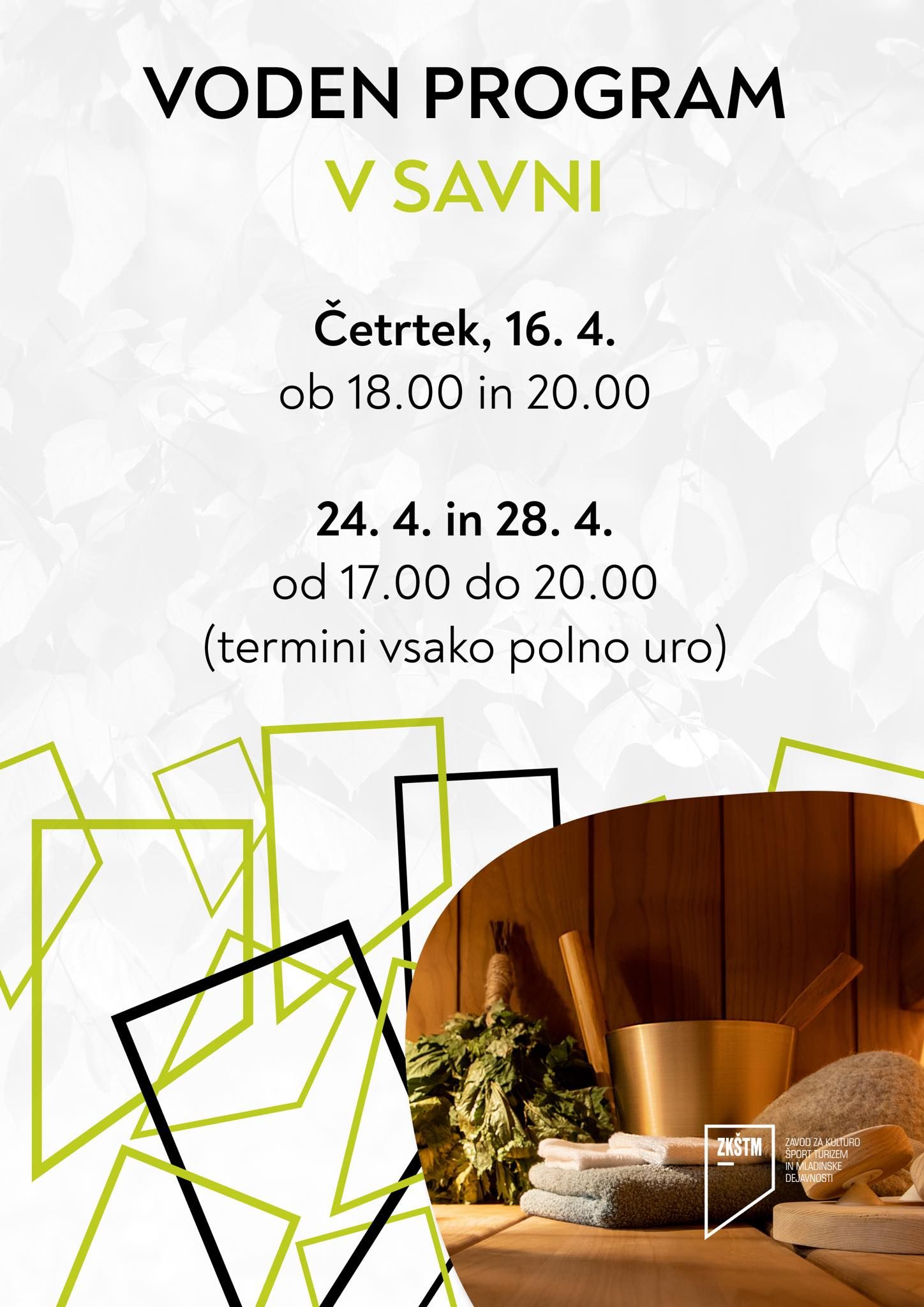 Ker ste po velikonočnih praznikih tako zelo uživali v programu vodenega savnanja v svetu savn na DTK-ju, je za vas ekipa ZKŠTM Ravne pripravila dodatne termine za užitek in sprostitev.