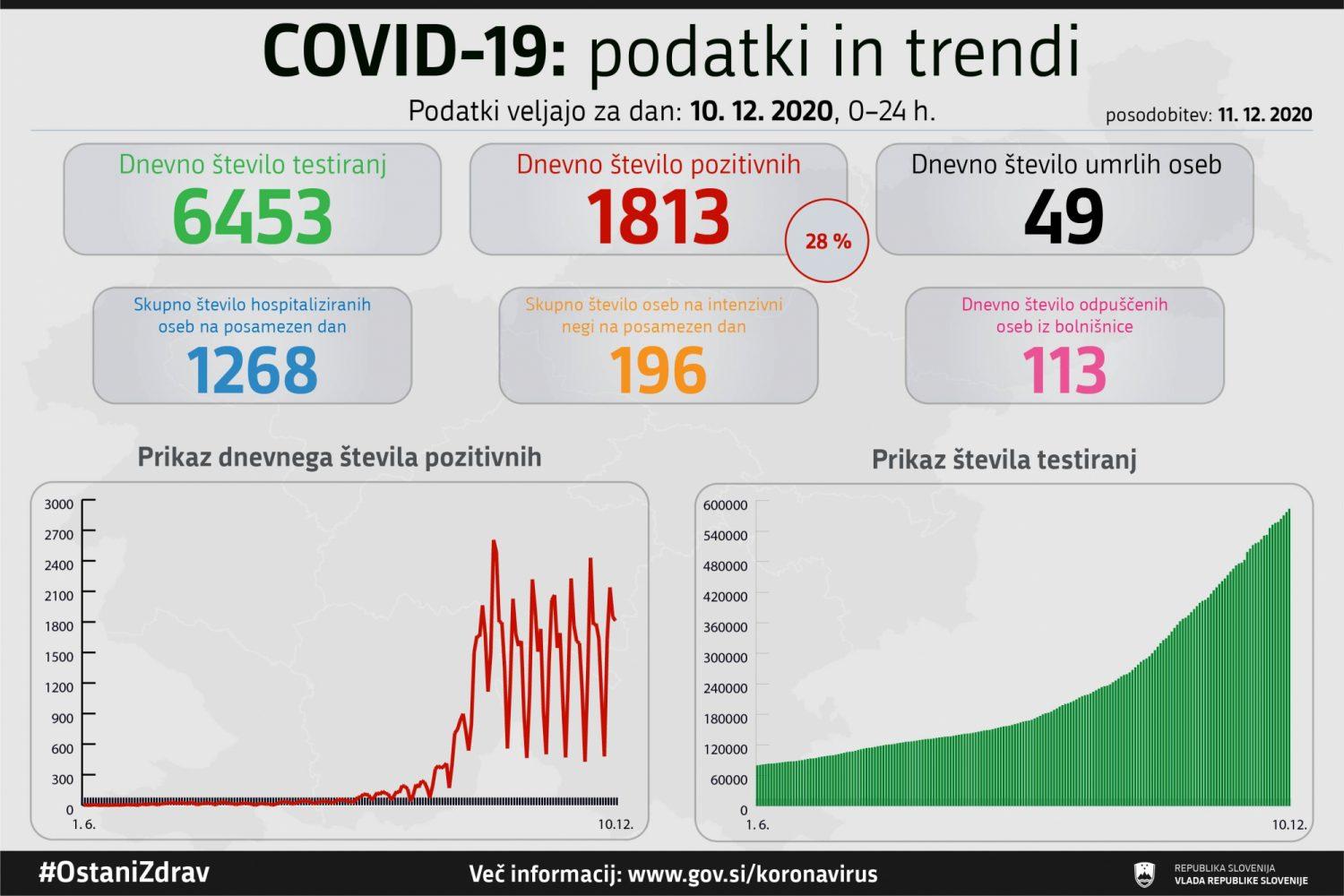 Trend obolelosti s koronavirusom v Sloveniji na dan 10. 12. 2020 (00:00-24:00):