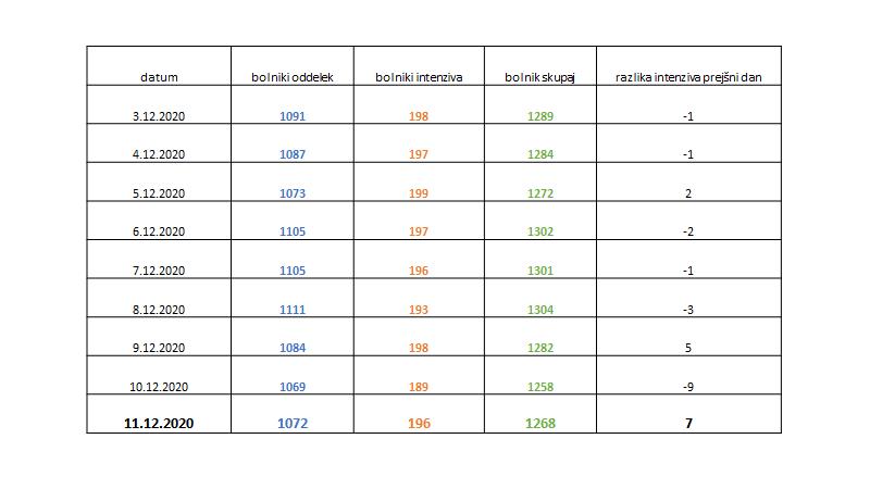 - Št. oseb na intenzivni negi: 196