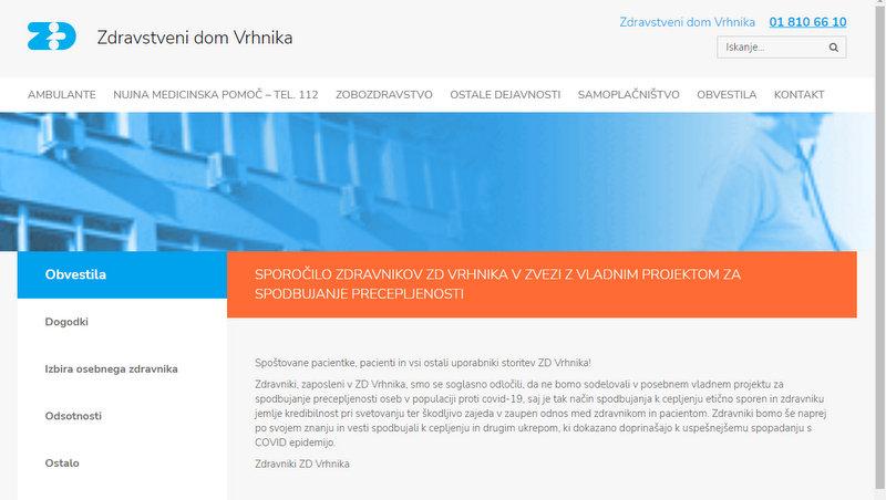"Zdravniki, zaposleni v ZD Vrhnika, smo se soglasno odločili, da ne bomo sodelovali v posebnem vladnem projektu za spodbujanje precepljenosti oseb v populaciji proti covid-19, saj je tak način spodbujanja k cepljenju etično sporen in zdravniku jemlje kredibilnost pri svetovanju ter škodljivo zajeda v zaupen odnos med zdravnikom in pacientom. Zdravniki bomo še naprej po svojem znanju in vesti spodbujali k cepljenju in drugim ukrepom, ki dokazano doprinašajo k uspešnejšemu spopadanju s COVID epidemijo."
