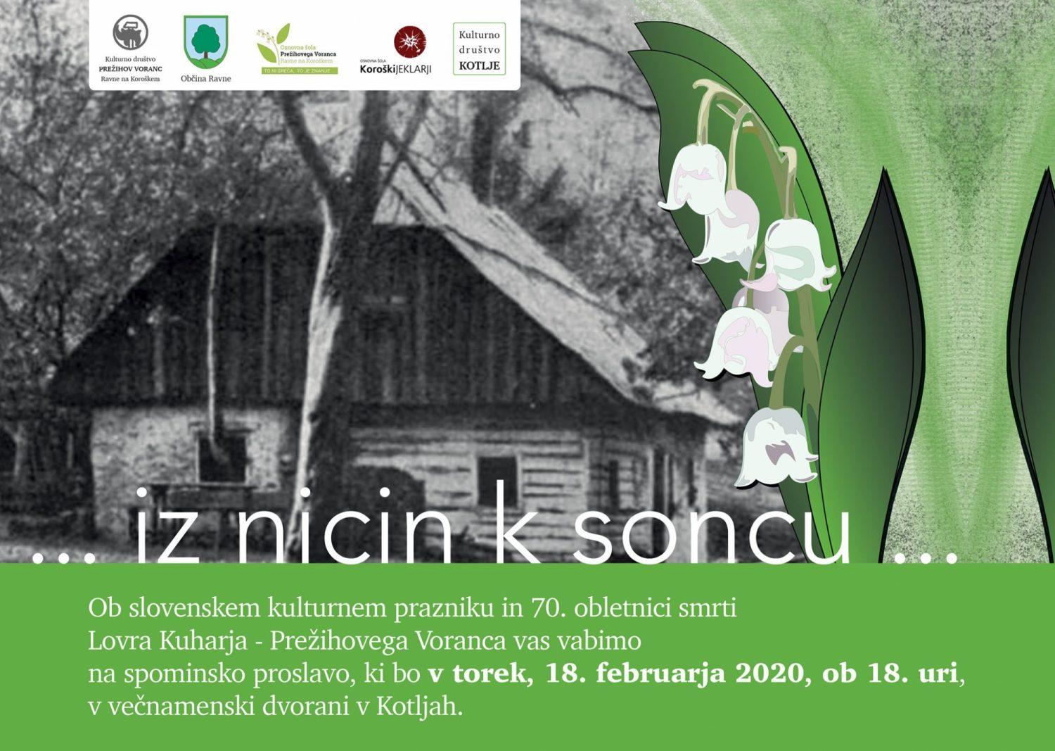 Letos mineva 70. let od smrti enega najpomembnejših slovenskih literatov Lovra Kuharja - Prežihovega Voranca. Njemu v spomin bo v večnamenski dvorani v Kotljah potekala prireditev. Na prireditvi bodo nastopili učenci iz Osnovne šole Prežihovega Voranca in iz Osnovne šole Koroški jeklarji. Nastopili bodo še: Ženski pevski zbor Solzice, Ženska vokalna skuoina Deteljice, Rožmarin, Jožica Brežnjak, Harmonikarski orkester, Folklorna skupina KD PV, Koroški oktet, Milan Kamink. Klavdija KIA Zbičajnik bo predstavila knjigo Prežihovi odtisi, Miran Kodrin pa knjigo Prežihov Voranc in venec anagramov. Omenjeni knjigi bosta na voljo obiskovalcem.