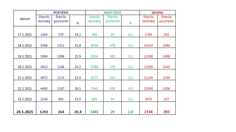 Trend obolelosti s koronavirusom v Sloveniji na dan 24. 1. 2021 (00:00-24:00):