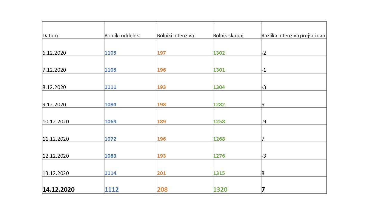- Št. oseb na intenzivni negi: 208 (7 več kot dan pred tem)