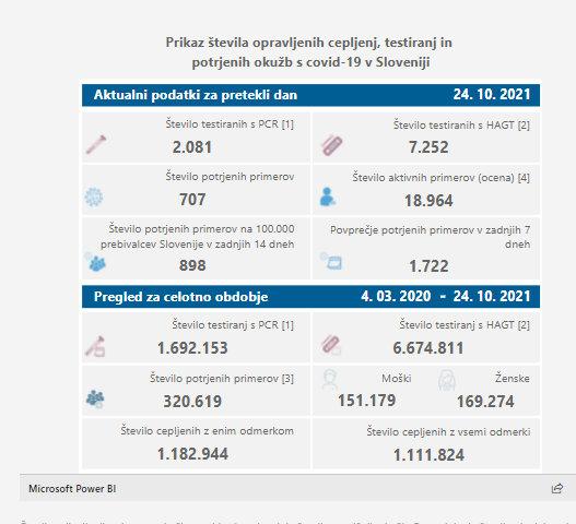 Število aktivnih primerov v državi po podatkih NIJZ znaša 18.964, dan pred tem 18.447.