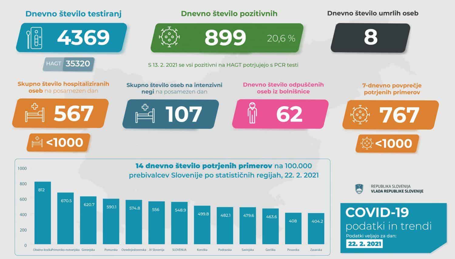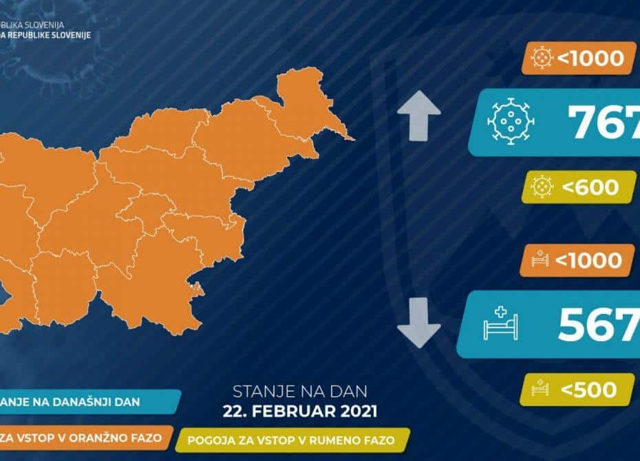 Trend obolelosti s koronavirusom v Sloveniji na dan 22. 2. 2021 (00:00-24:00):