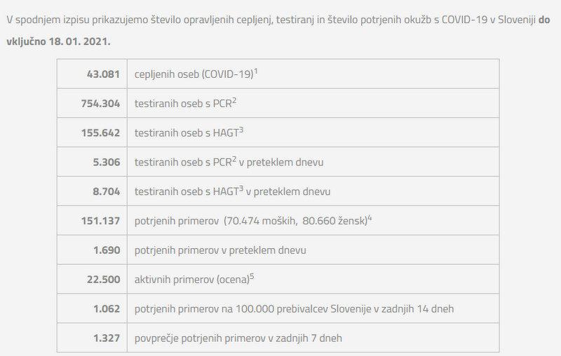 Trend obolelosti s koronavirusom v Sloveniji na dan 18. 1. 2021 (00:00-24:00):
