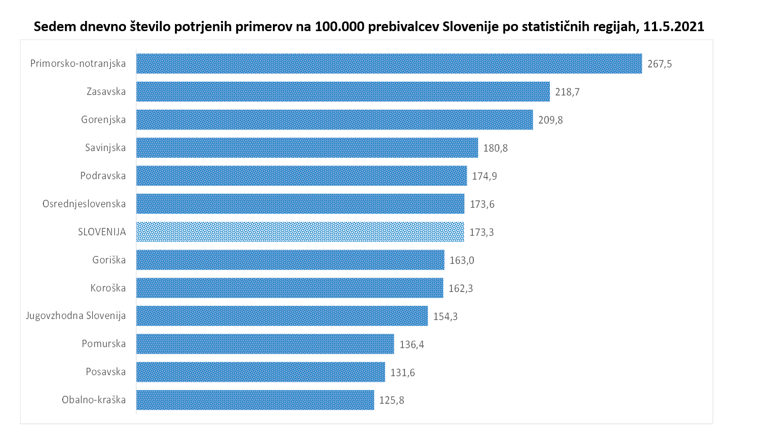 7-dnevno povprečje okužb je danes nižje kot je bilo včeraj in danes po podatkih NIJZ znaša 520. Devet regij je trenutno obarvano rumeno, tri pa so še vedno obarvane oranžno je dejala Maja Bratuša. Te tri regije so primorsko-notranjska, zasavska in gorenjska. Na ravni države 14-dnevna incidenca znaša 423,1, le štiri regije imajo višjo incidenco kot ta znaša na državni ravni. Koroška ima 14-dnevno incidenco 162,3.