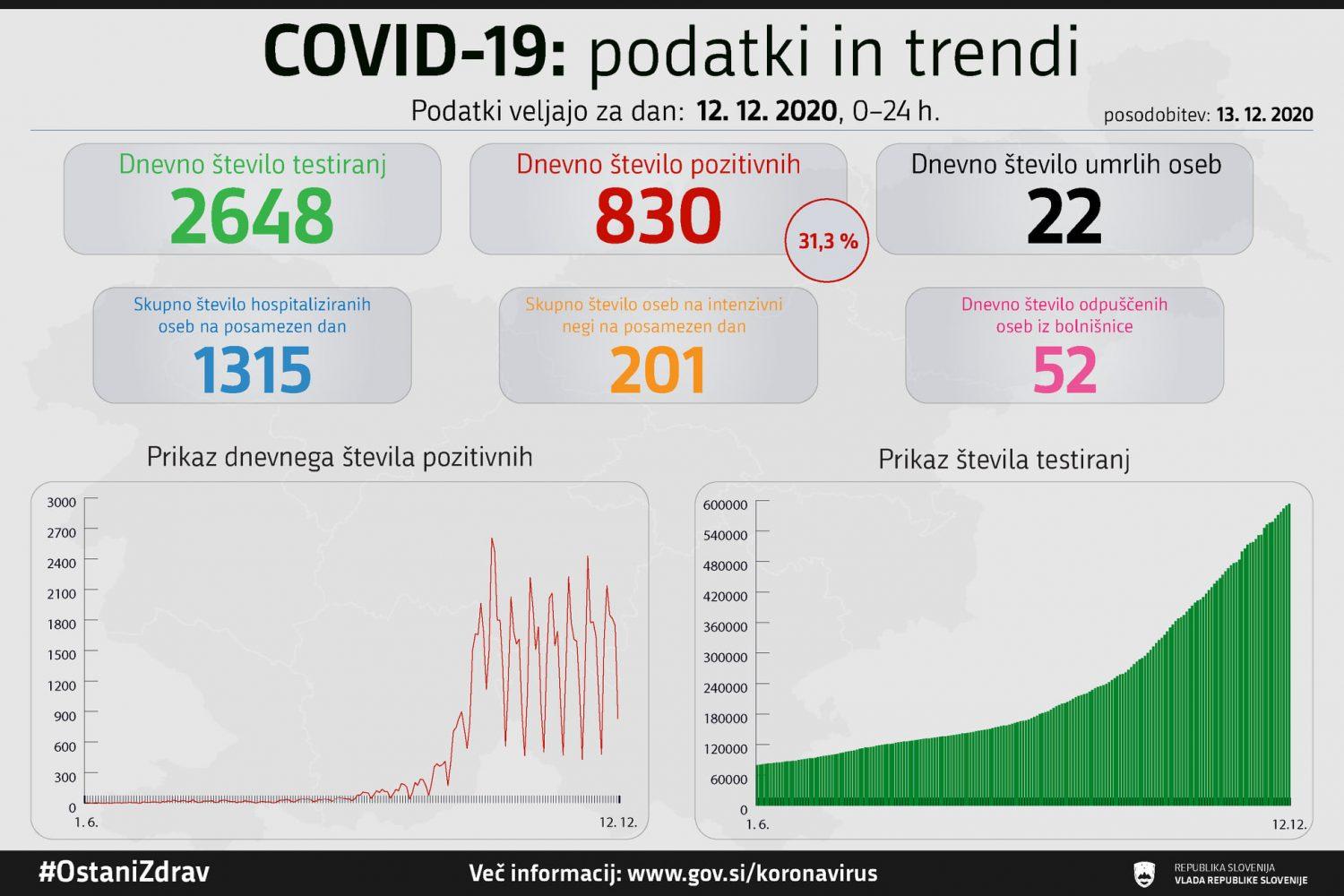 Trend obolelosti s koronavirusom v Sloveniji na dan 12. 12. 2020 (00:00-24:00):