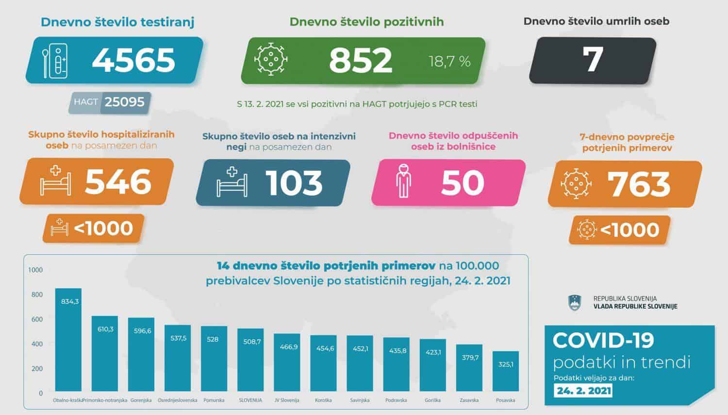Trend obolelosti s koronavirusom v Sloveniji na dan 24. 2. 2021 (00:00-24:00):