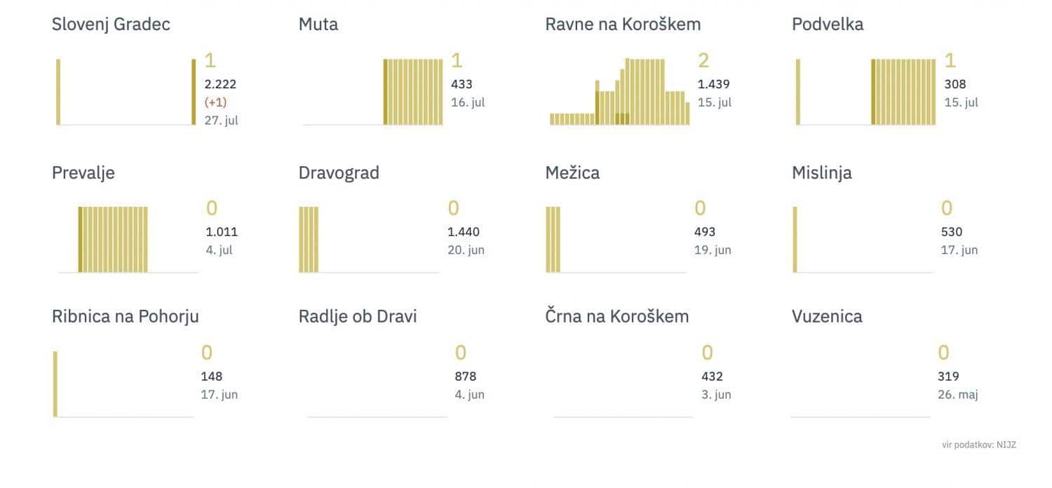 Po podatkih Covid-19 sledilnika imamo na Koroškem včeraj 1 potrjeno okužbo v Slovenj Gradcu
