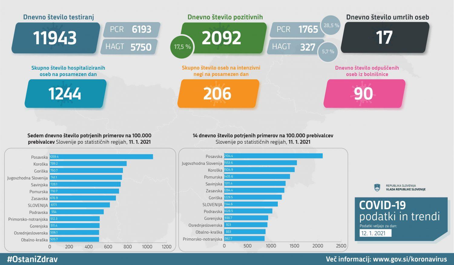 - Št. pozitivnih: 2092 (17,5 %)