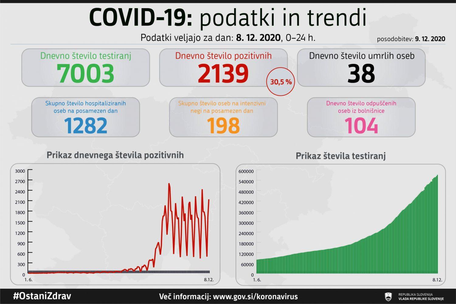 Trend obolelosti s koronavirusom v Sloveniji na dan 8. 12. 2020 (00:00-24:00):