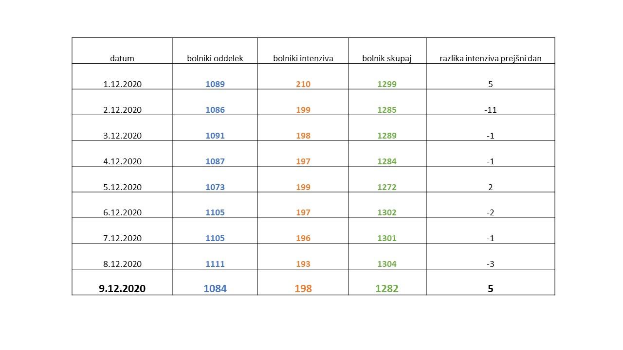 - Št. oseb na intenzivni negi: 198