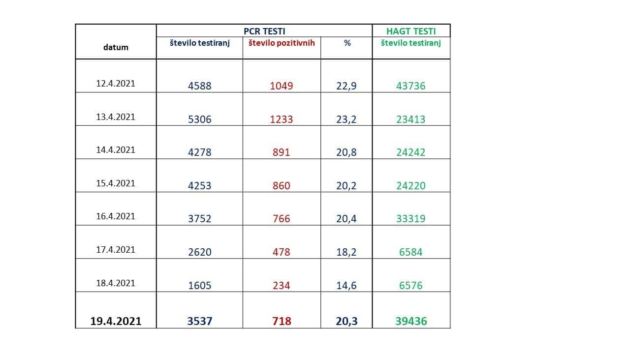 Maja Bratuša je predstavila podatke, ki so danes kot je dejala "nekoliko bolj vzpodbudni". Včeraj je bilo opravljenih 3.537 PCR testiranj in 39.436 hitrih antigenskih testov. S PCR testi je bilo včeraj potrjenih 718 novih okužb. 7-dnevno povprečje okužb po danes objavljenih podatkih NIJZ znaša 737, včeraj 785.