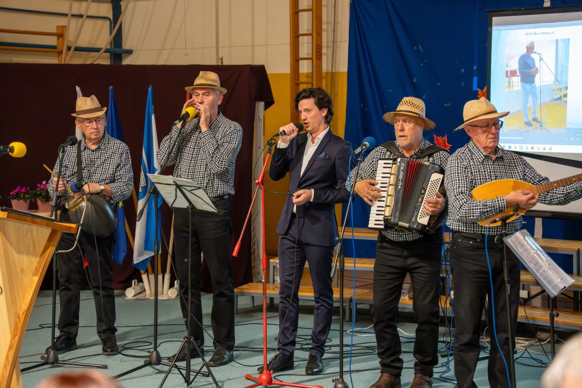 V slavnostnem programu so se zvrstili nastopili domačih pevcev, glasbenikov in recitatorjev ter slavnostni nagovori. Predsednik DU Šmartno pri Slovenj Gradcu Jože Cokan je ponosno predstavil bogato delovanje društva, ki povezuje številne krajane in skrbi za pestro dogajanje – od športnih in ustvarjalnih aktivnosti do družabnih in dobrodelnih pobud. Zbrane so nagovorili tudi podžupan MO Slovenj Gradec, predsednik DU Slovenj Gradec in podpredsednik Koroške pokrajinske zveze društev upokojencev dr. Peter Pungartnik, predsednica VS Šmartno pri Slovenj Gradcu Darja Garnbret ter predsednica Zveze društev upokojencev Slovenije Zdenka Jan, slavnostna govornica, ki je v nagovoru čestitala jubilantom in poudarila, da bo ZDUS tudi v prihodnje ustvarjal pogoje za njihovo dejavnost.