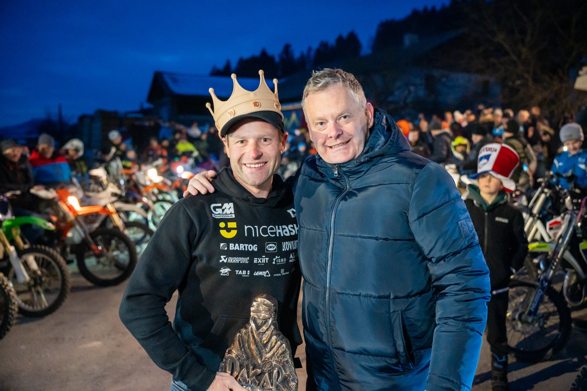 V ponedeljek, 19. januarja, se je po svojem četrtem in tudi najuspešnejšem nastopu na zahtevni vzdržljivostni preizkušnji Dakar koroški dirkač z velikim nasmehom vrnil domov, na domači Legen, kjer ga je pričakala velika množica podpornikov, prijateljev, znancev, oboževalcev in navdušencev tega športa.