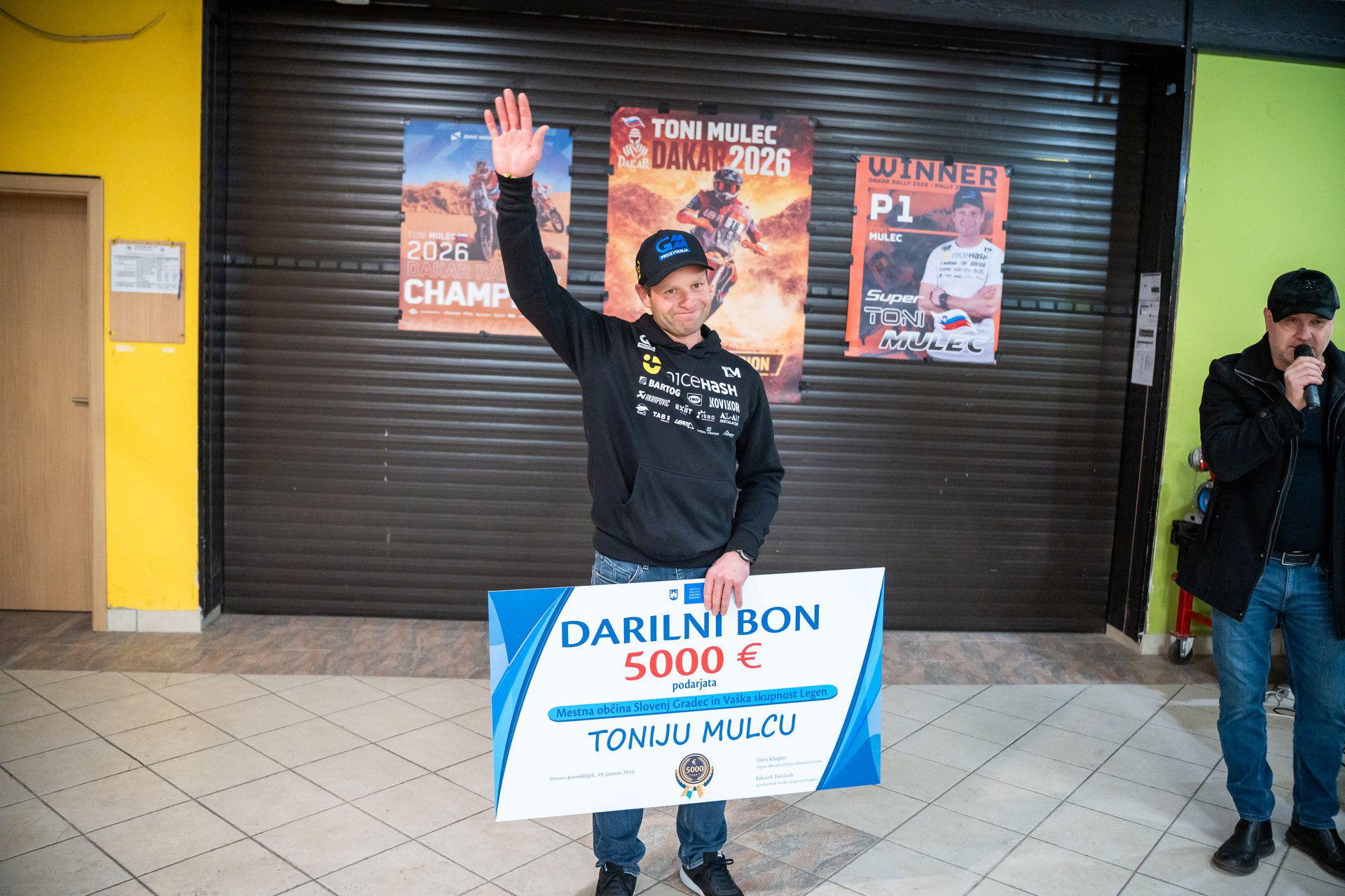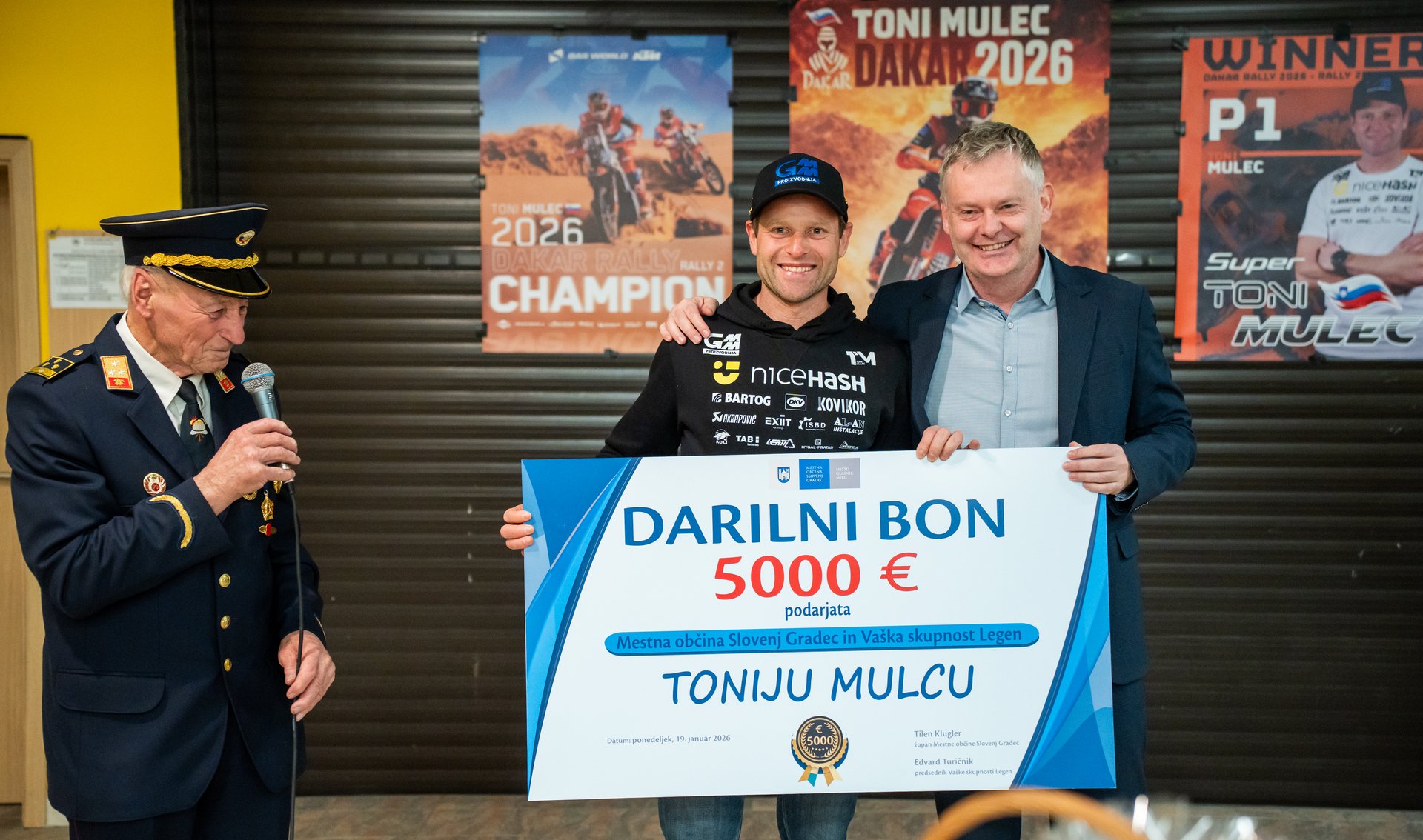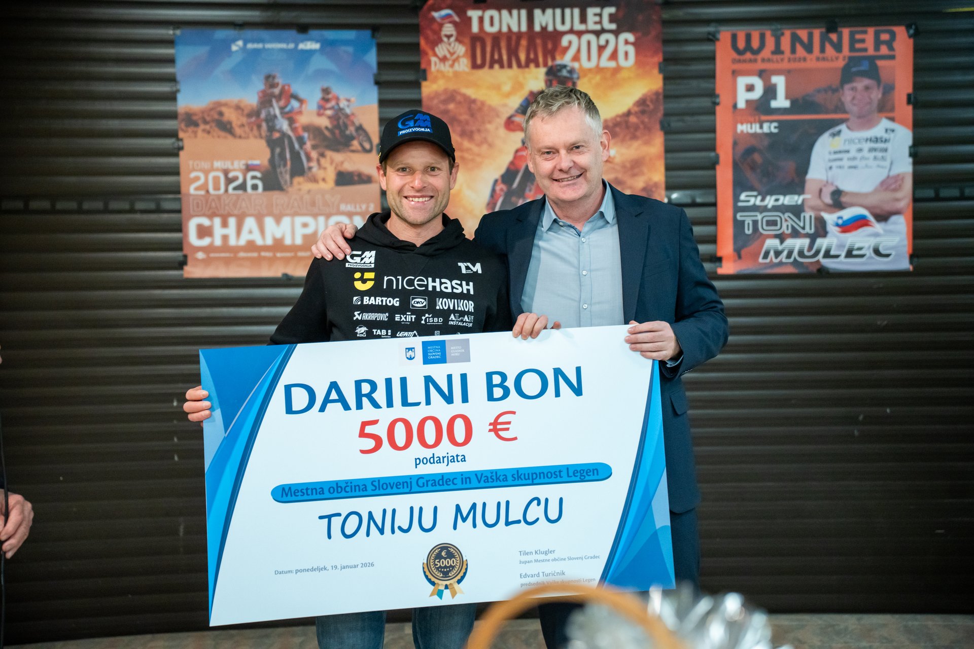 Čestitkam se je pridružil tudi župan Mestne občine Slovenj Gradec, Tilen Klugler, ki ponosa nad izjemnim slovenjgraškim dirkačem ni skrival. V znak podpore je skupaj s predsednikom Vaške skupnosti Legen, Edvardom Turičnikom, Toniju predal bon v višini 5.000 €.
