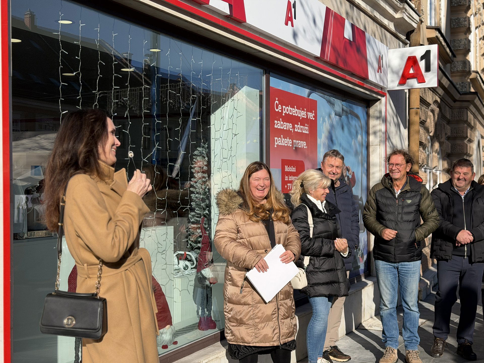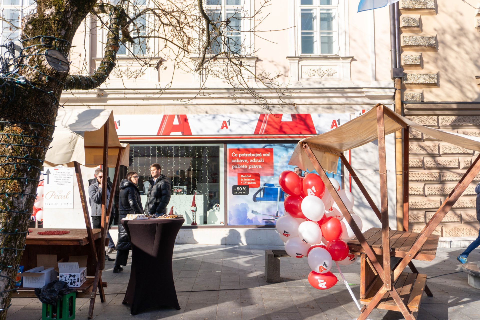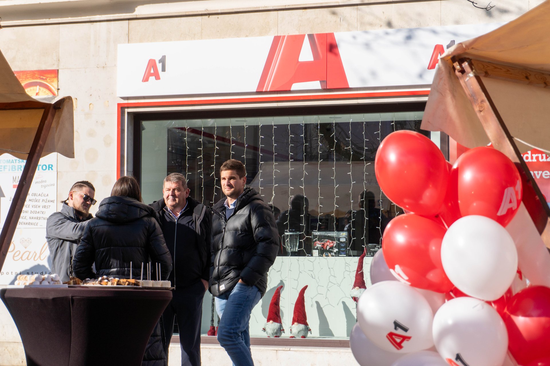 Sonce, dobra družba in odprtje nove poslovalnice podjetja A1 so v petek, 28. novembra 2025, privabili kopico obiskovalcev v mestno jedro Slovenj Gradca.