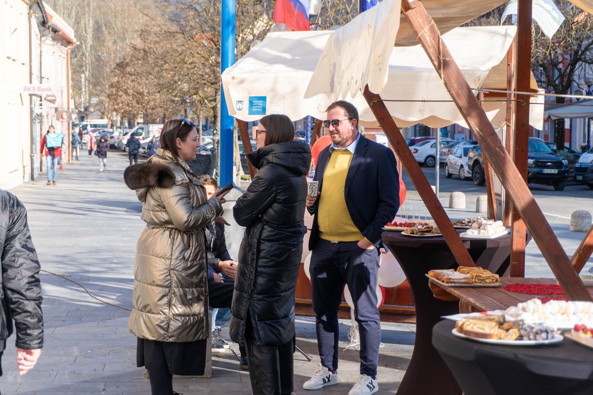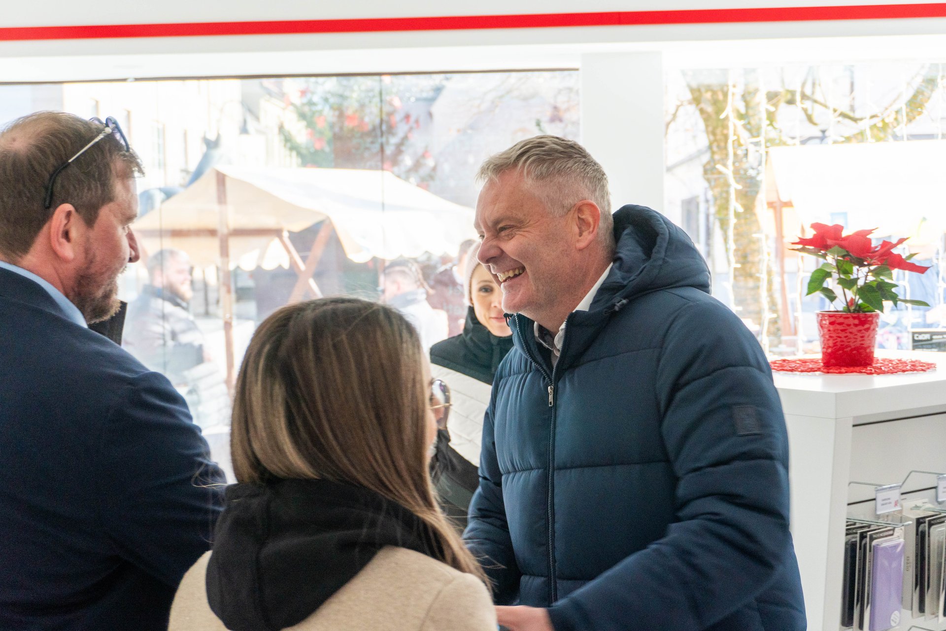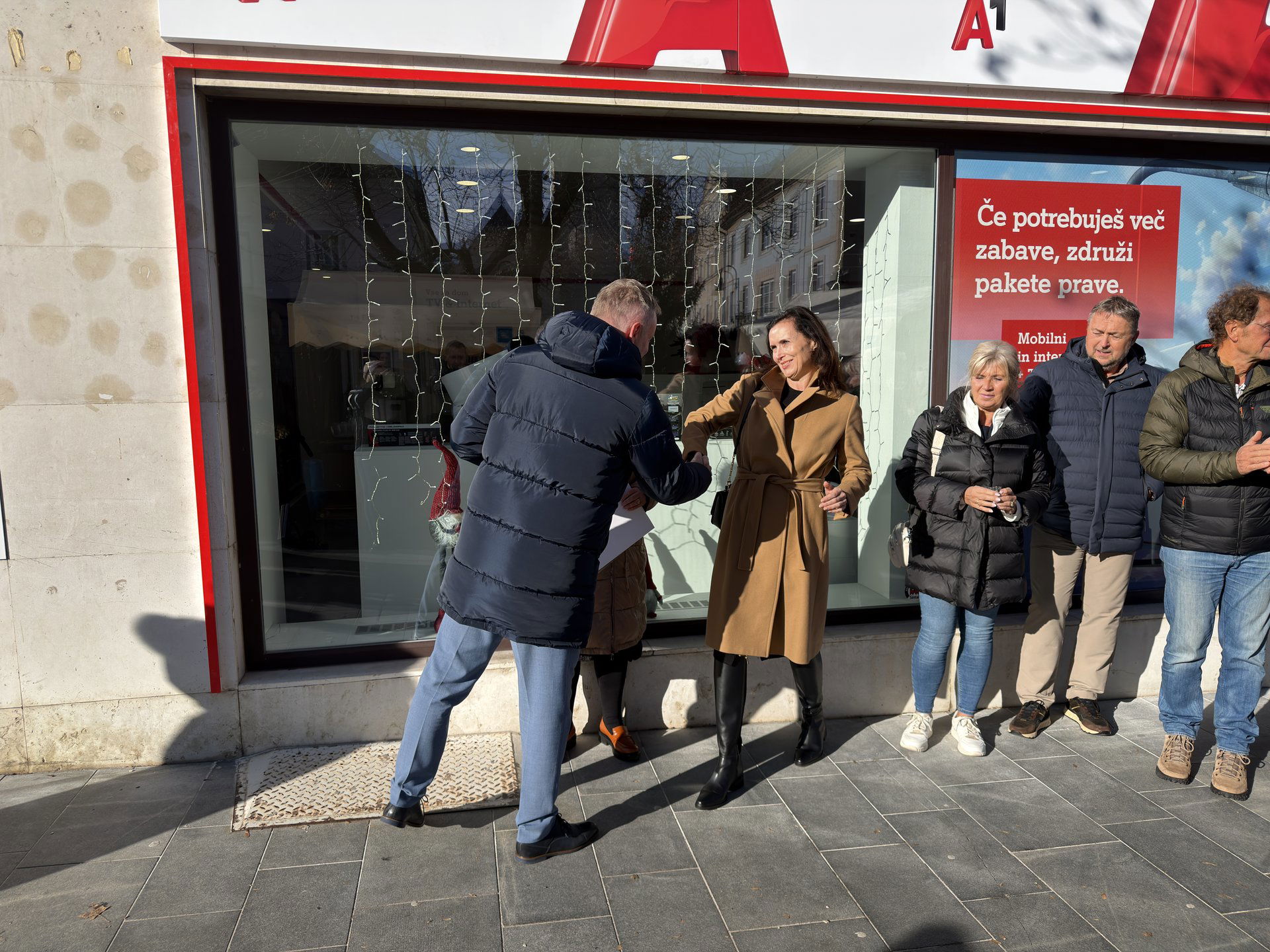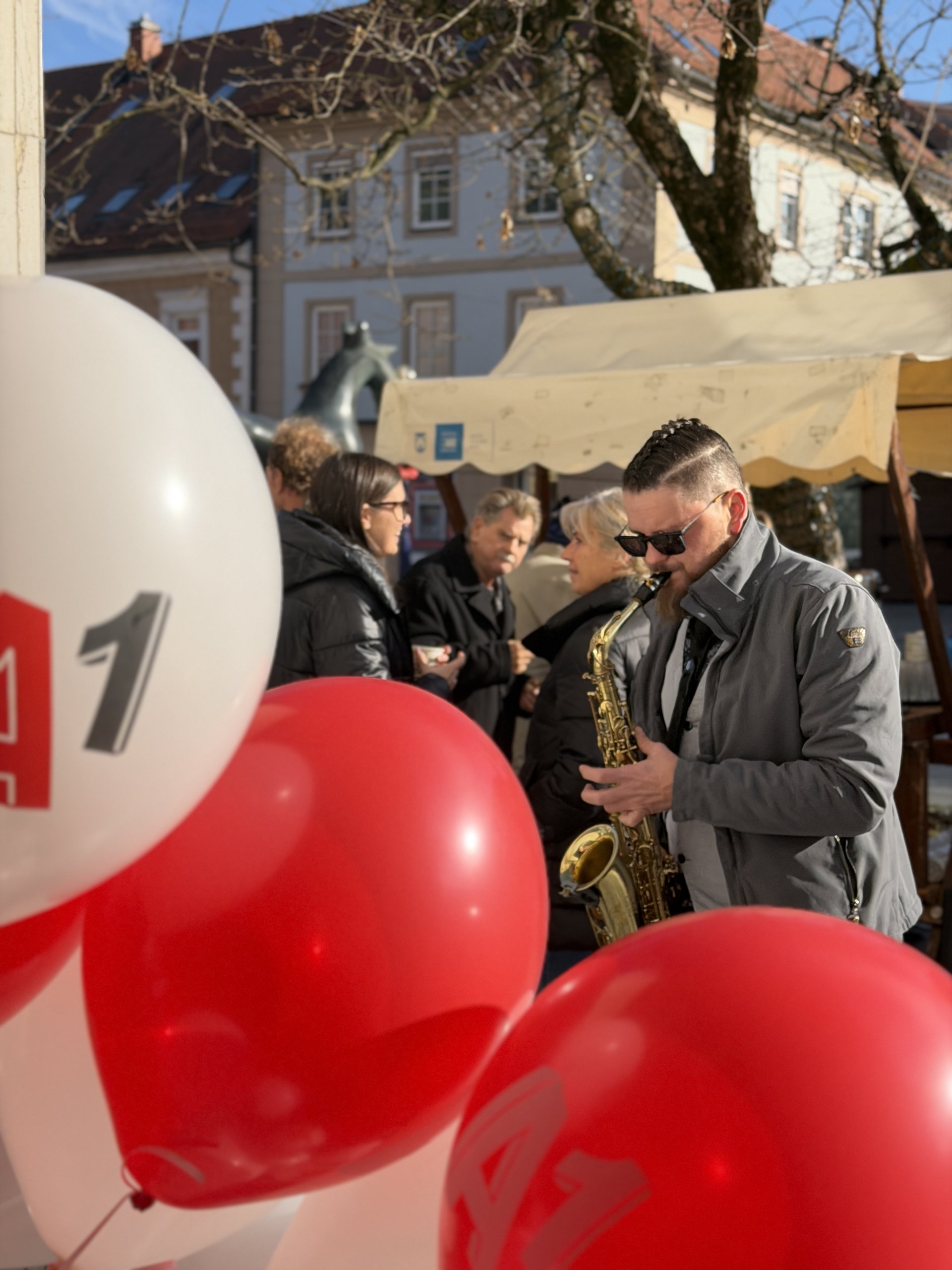 Sonce, dobra družba in odprtje nove poslovalnice podjetja A1 so v petek, 28. novembra 2025, privabili kopico obiskovalcev v mestno jedro Slovenj Gradca.