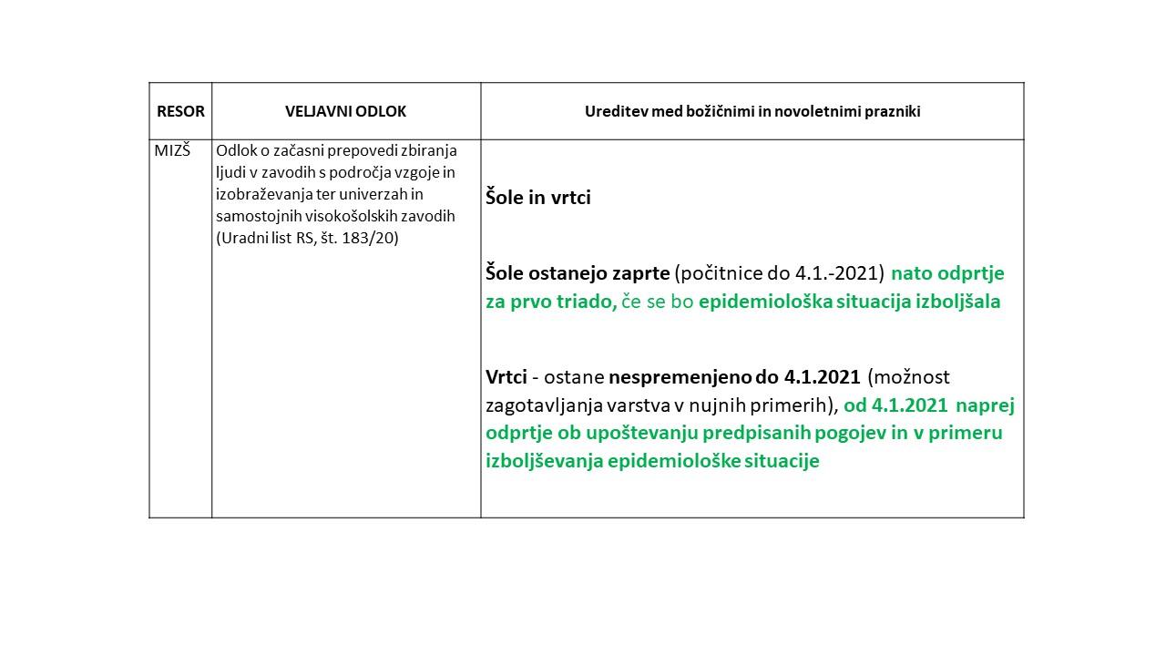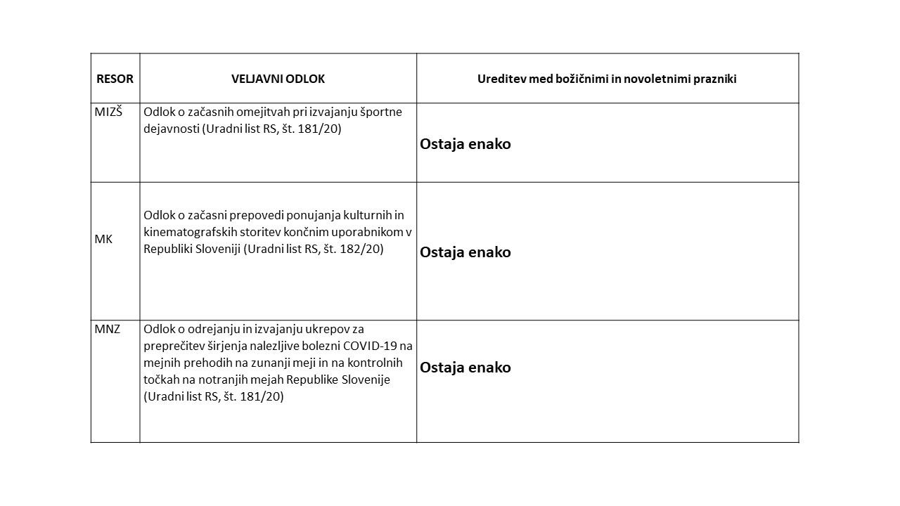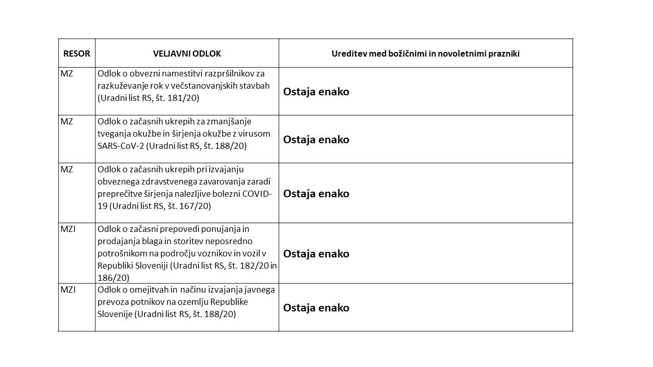 Načrt ureditve, ki je bil sprejet na današnji seji velja za božične praznike. Za novoletne praznike pa le, če bodo epidemiološke razmere to dopuščale in se ne bodo v tednu med božičem in novim letom poslabšale.