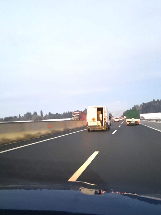 Policisti Postaje prometne policije Celje so včeraj zjutraj, med kontrolo cestnega prometa na avtocesti A1, med vožnjo iz smeri Arje vasi proti Šempetru opazili, da so se vozniku kombiniranega vozila, med vožnjo po prehitevalnem pasu, odprla vrata tovornega prostora. Zaradi nevarnosti, da bi tovor padel po vozišču avtoceste, so voznika ustavili.