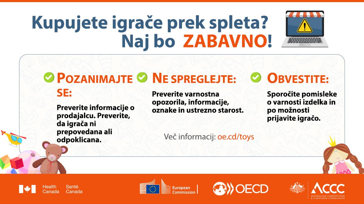 Ko kupujete igrače prek spleta svetujejo, da najprej preverite, da igrača ni odpoklicana, preverite vse informacije o izdelku in njegovi varnosti: ustrezno starostno omejitev, priporočeno starost, oznake, varnostna opozorila, preverite, ali je prodajalec zagotovil kontaktne podatke v primeru, da imate kakršna koli vprašanja kupujte na spletišču, ki mu zaupate.
