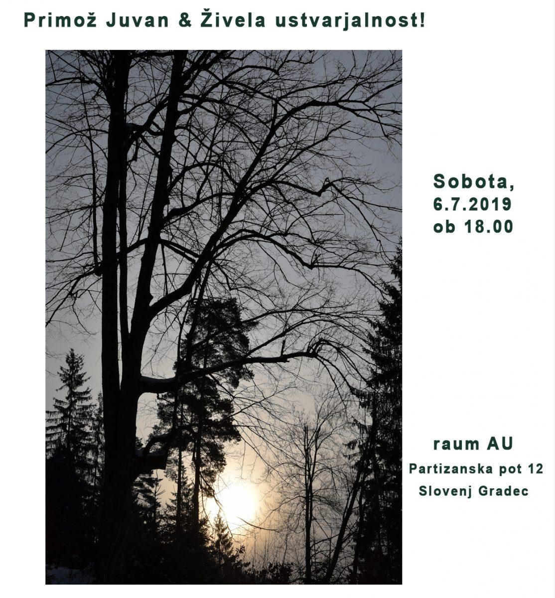 V svoj svet kreativnosti nas je kot drugi v sklopu projekta Živela ustvarjalnost! spustil Franc Denovnik Branko. Razstavo, katero smo si lahko ogledali do 2. julija, sta pospremili dve ustvarjalni delavnici. Zdaj pa je na vrsti naslednji kreativec, ki se nam bo predstavil v soboto, 6. julija 2019 v prostorih društva raum AU. Ob 18. uri bo otvoritev razstave Primoža Juvana, ki nas bo s fotografijo popeljal v gozd.