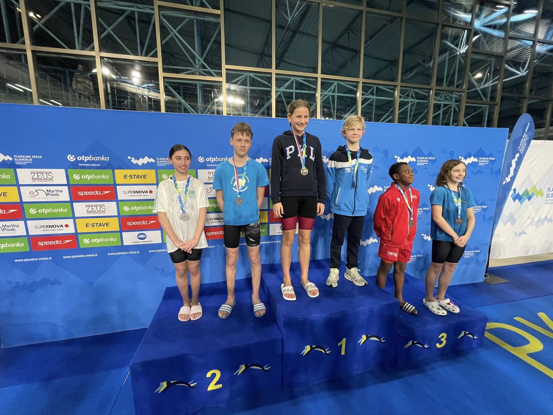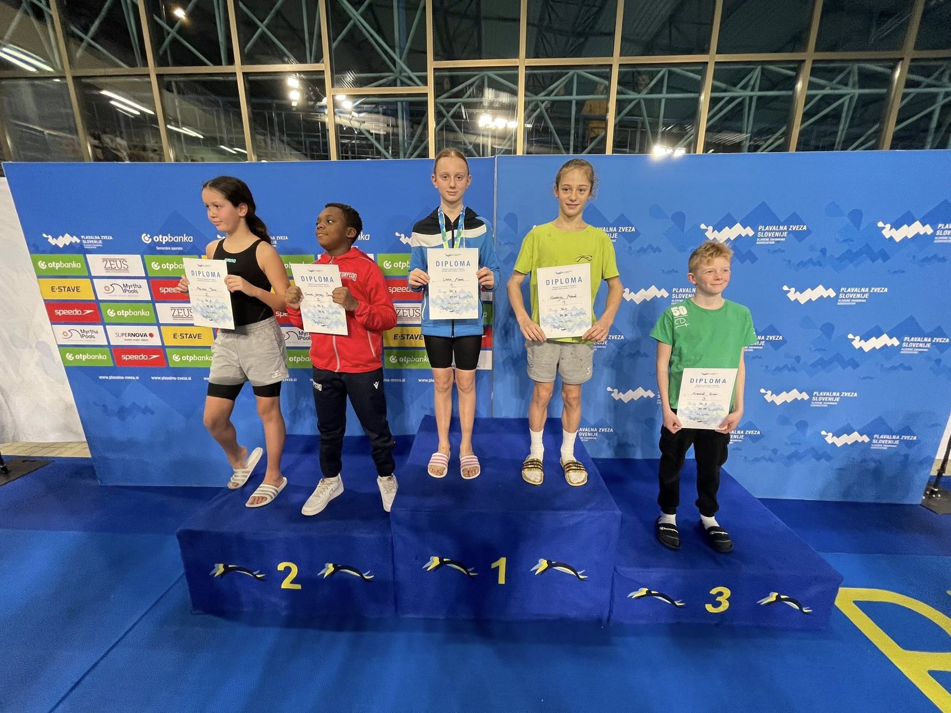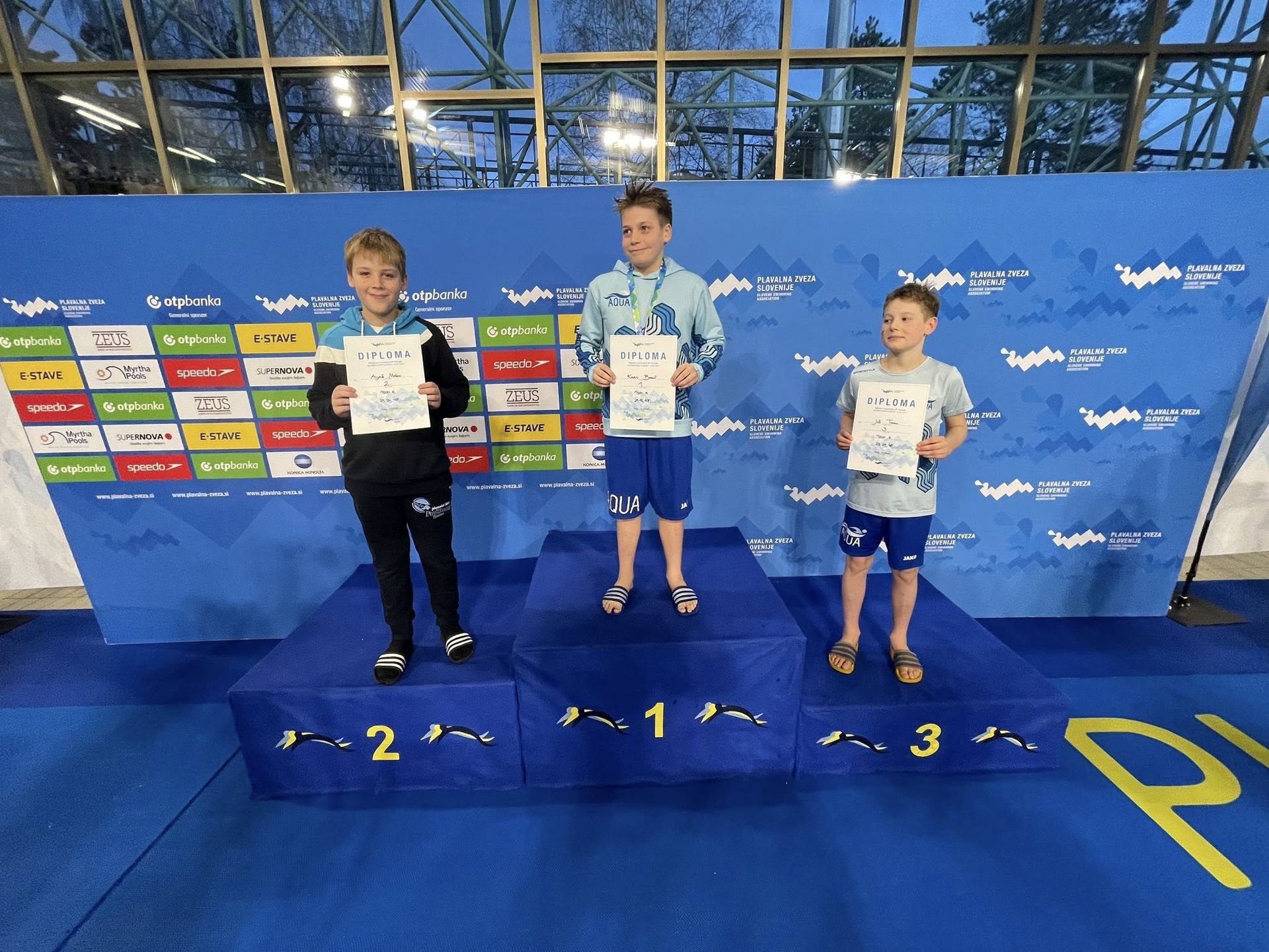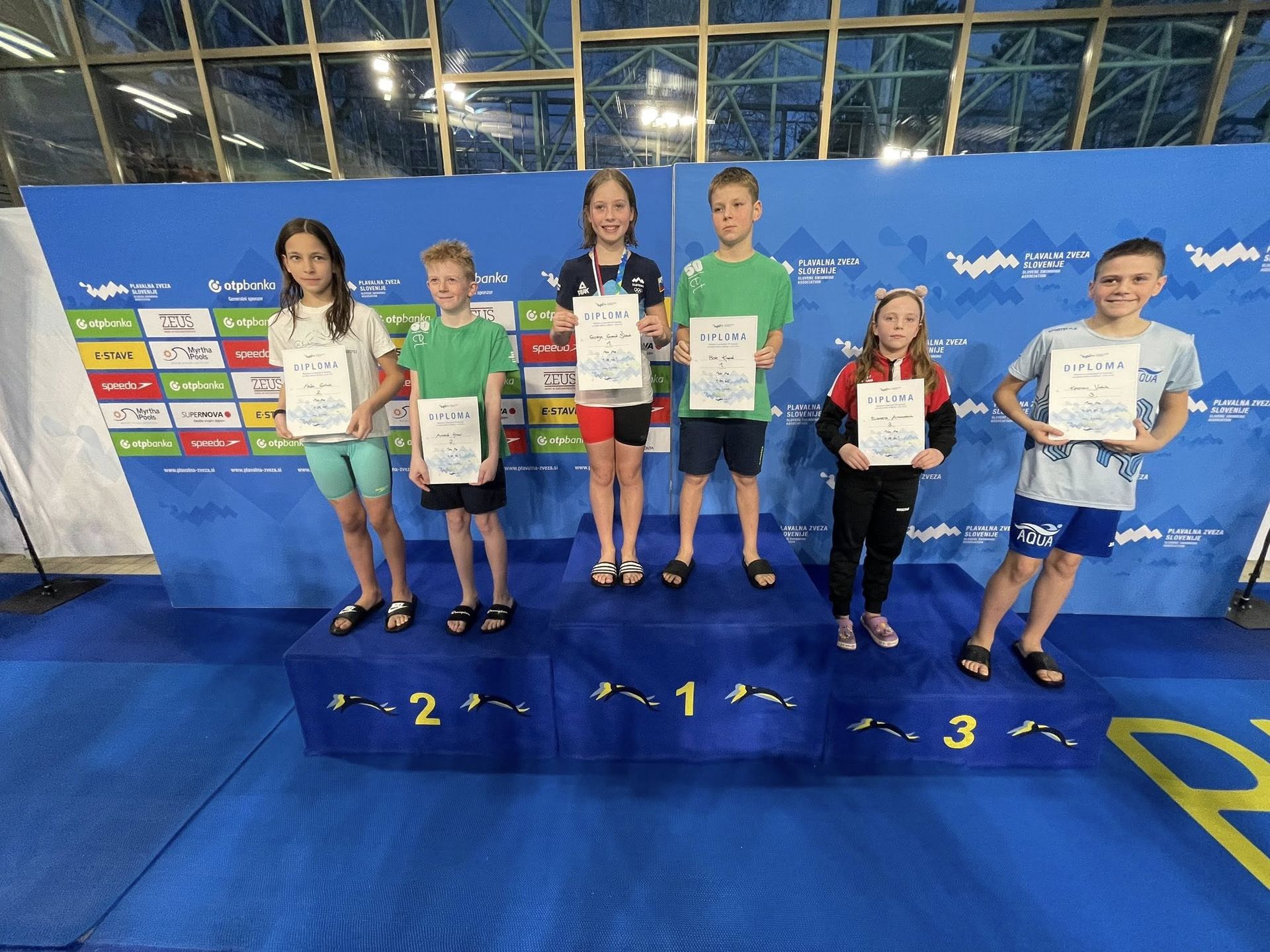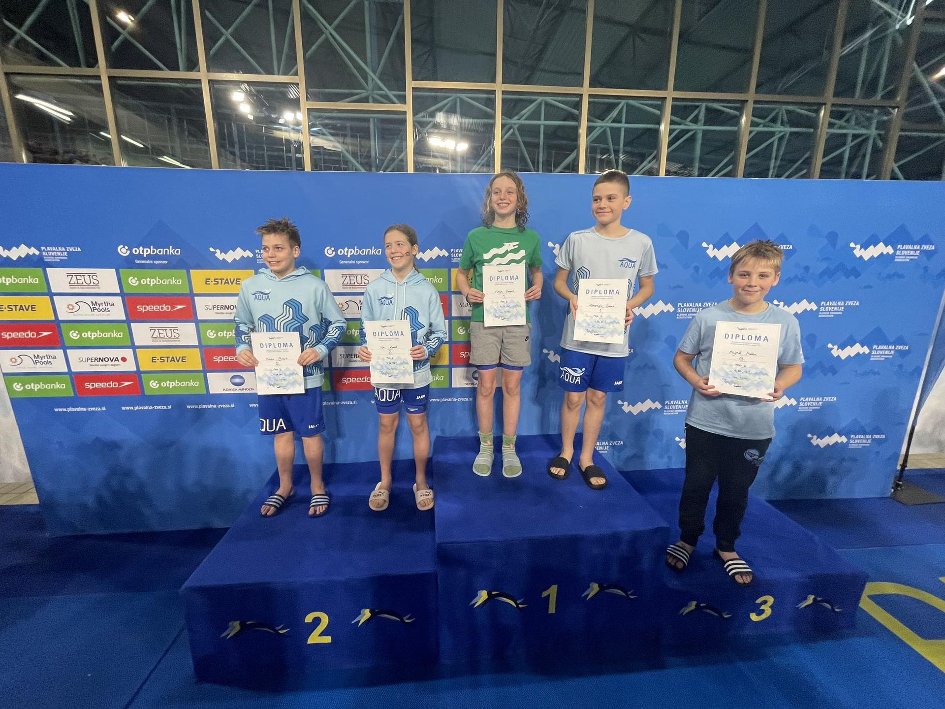 Uspešne so bile tudi štafete, štafete mlajših dečkov v postavi Anže Kos, Luka Plesec, Aljaž Meško in Ažbe Kolar je bila srebrna na 4x200 prosto, na 4x100 prosto pa bronasta, prav tako je bila bronasta štafeta mlajših deklic 4x100 prosto v postavi Glorija Gnamuš Šlebnik, Zala Gorenšek, Zala Simonič.