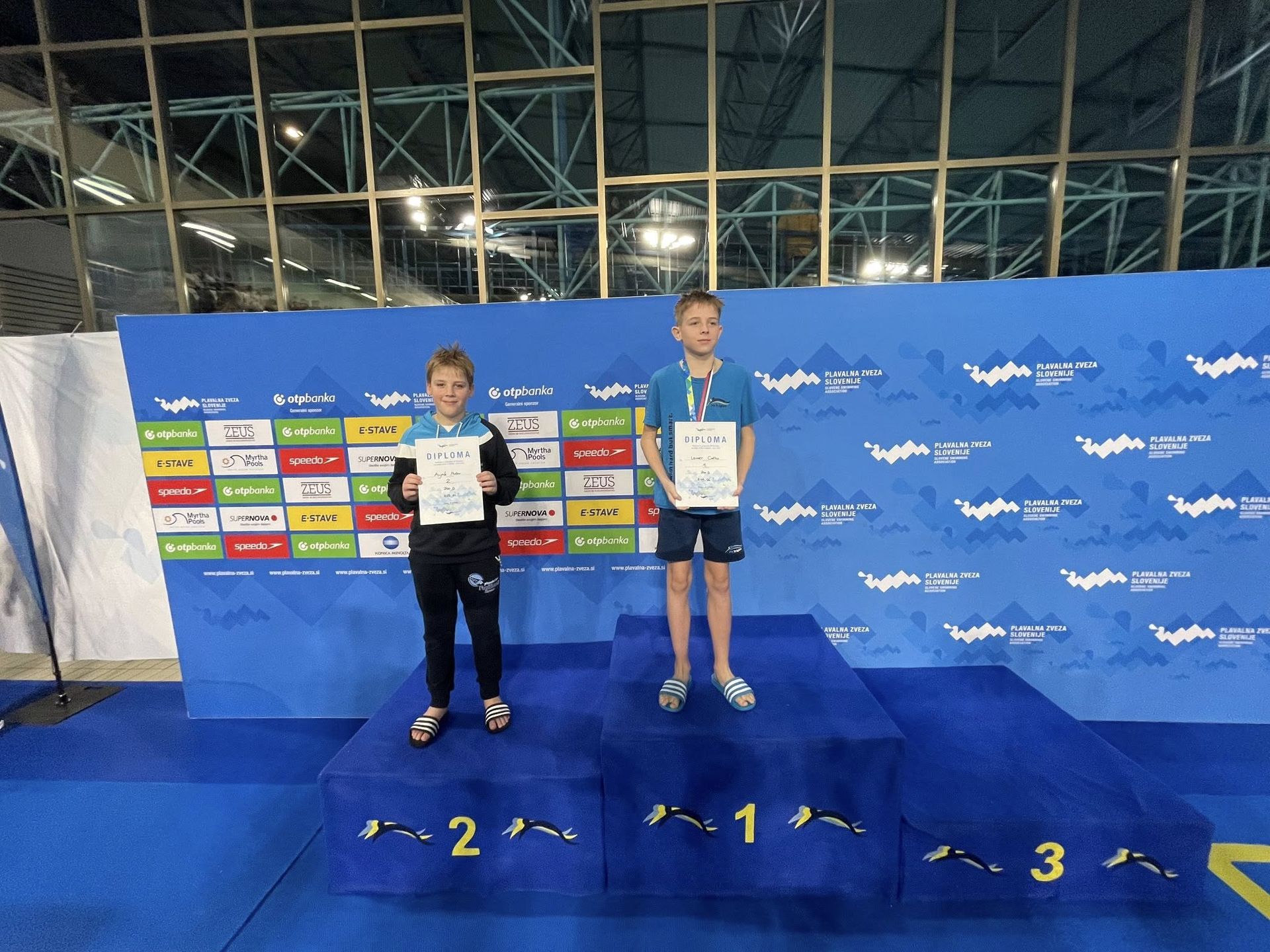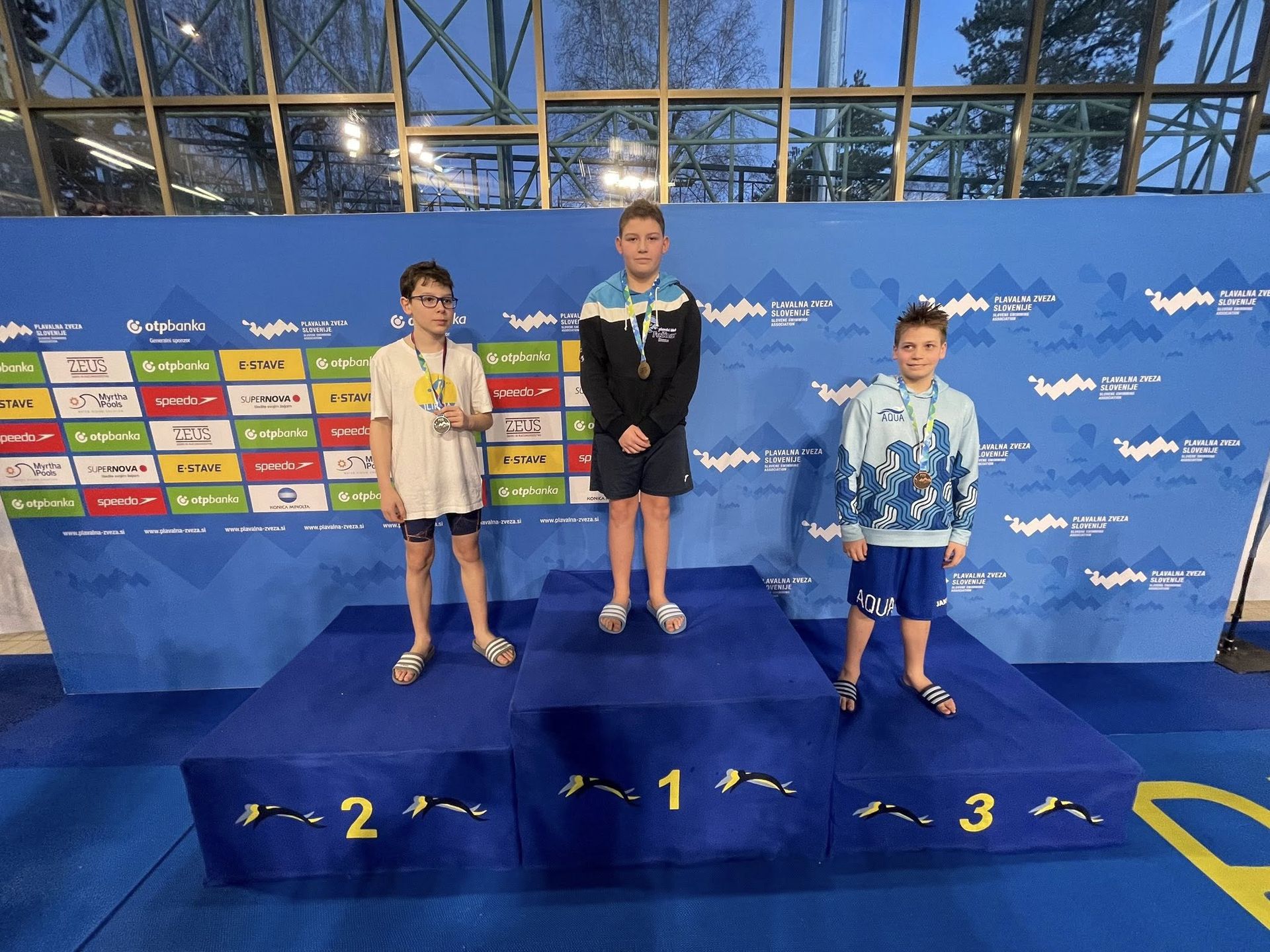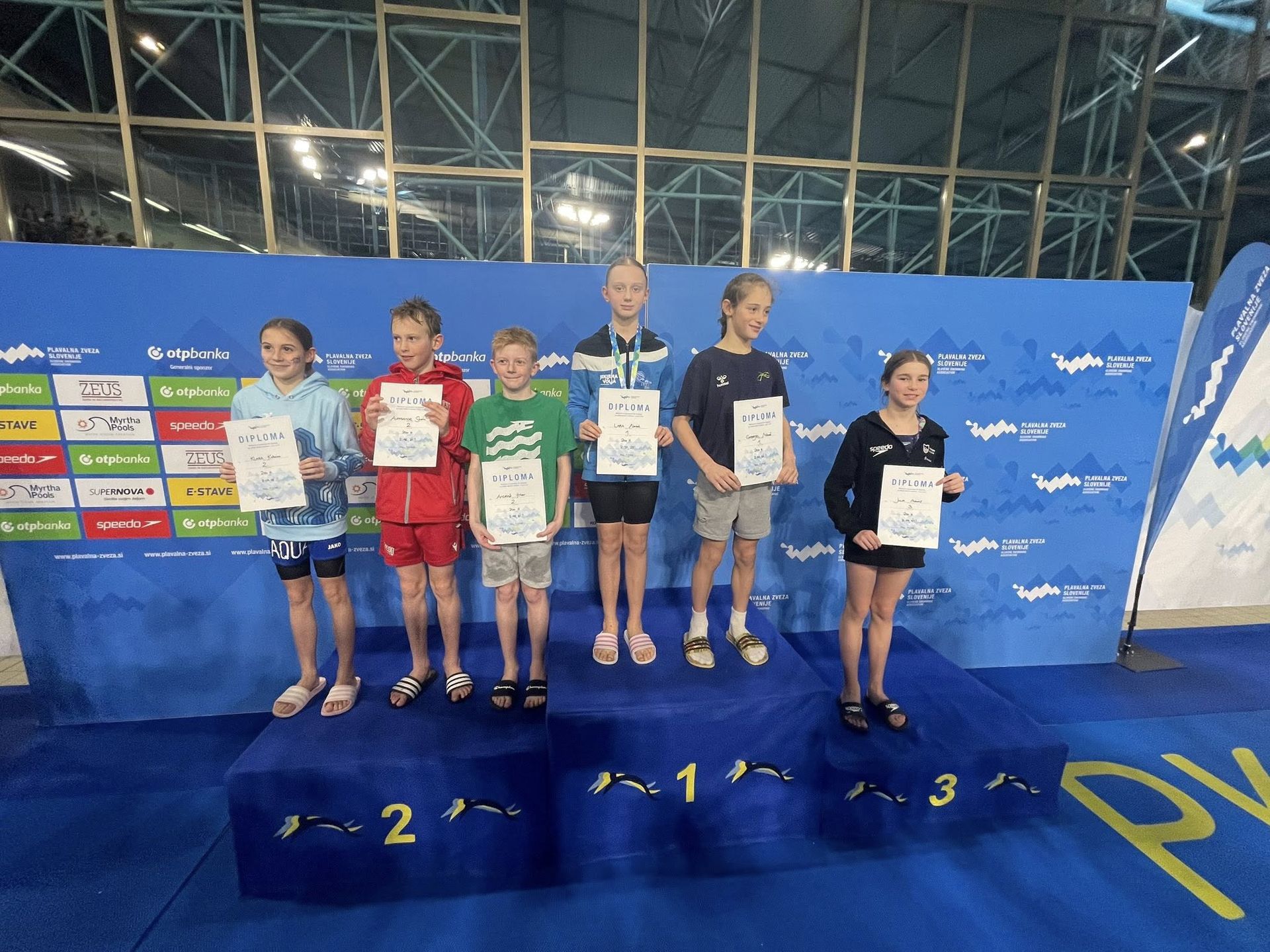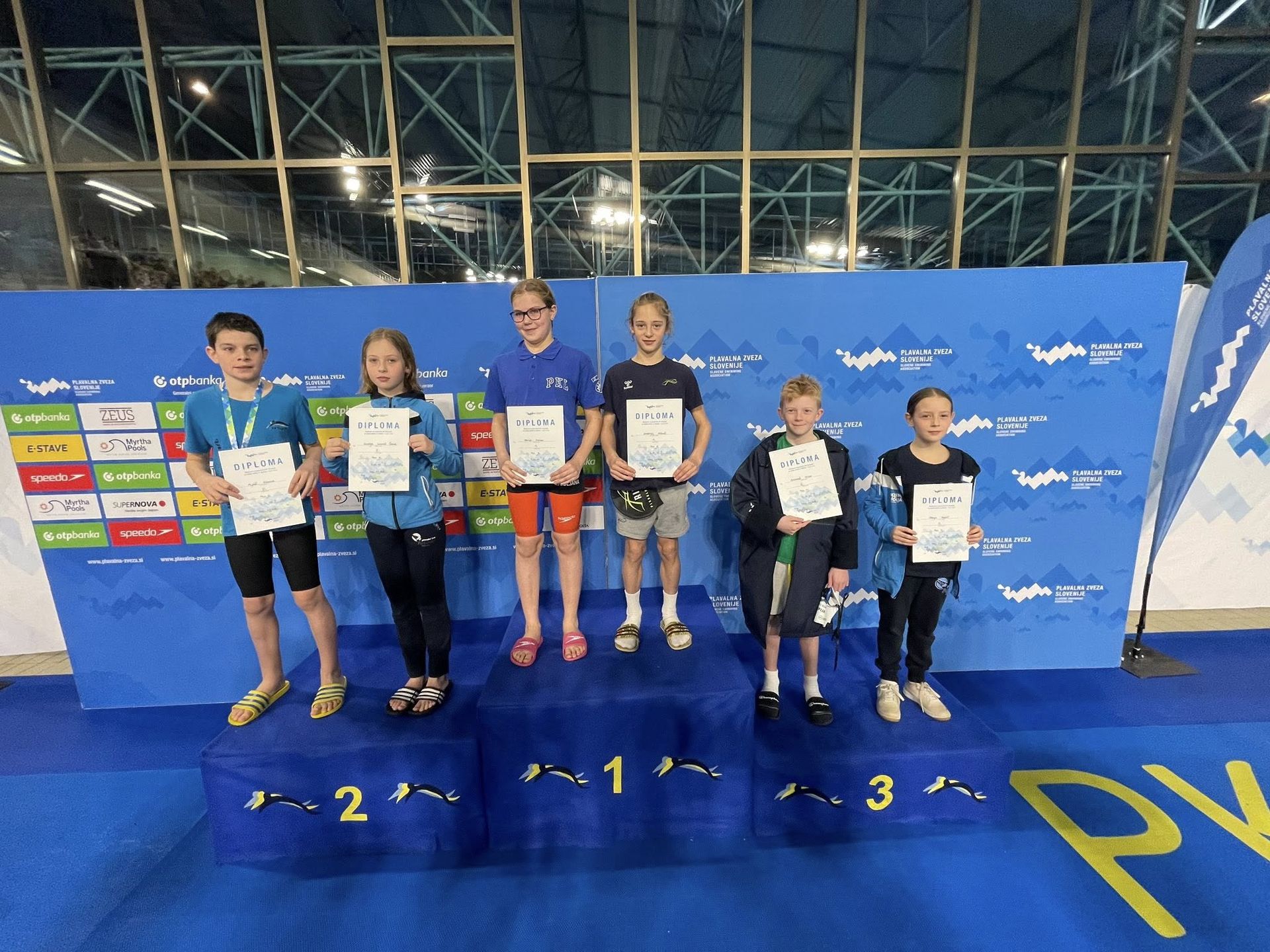 Uspešne so bile tudi štafete, štafete mlajših dečkov v postavi Anže Kos, Luka Plesec, Aljaž Meško in Ažbe Kolar je bila srebrna na 4x200 prosto, na 4x100 prosto pa bronasta, prav tako je bila bronasta štafeta mlajših deklic 4x100 prosto v postavi Glorija Gnamuš Šlebnik, Zala Gorenšek, Zala Simonič.