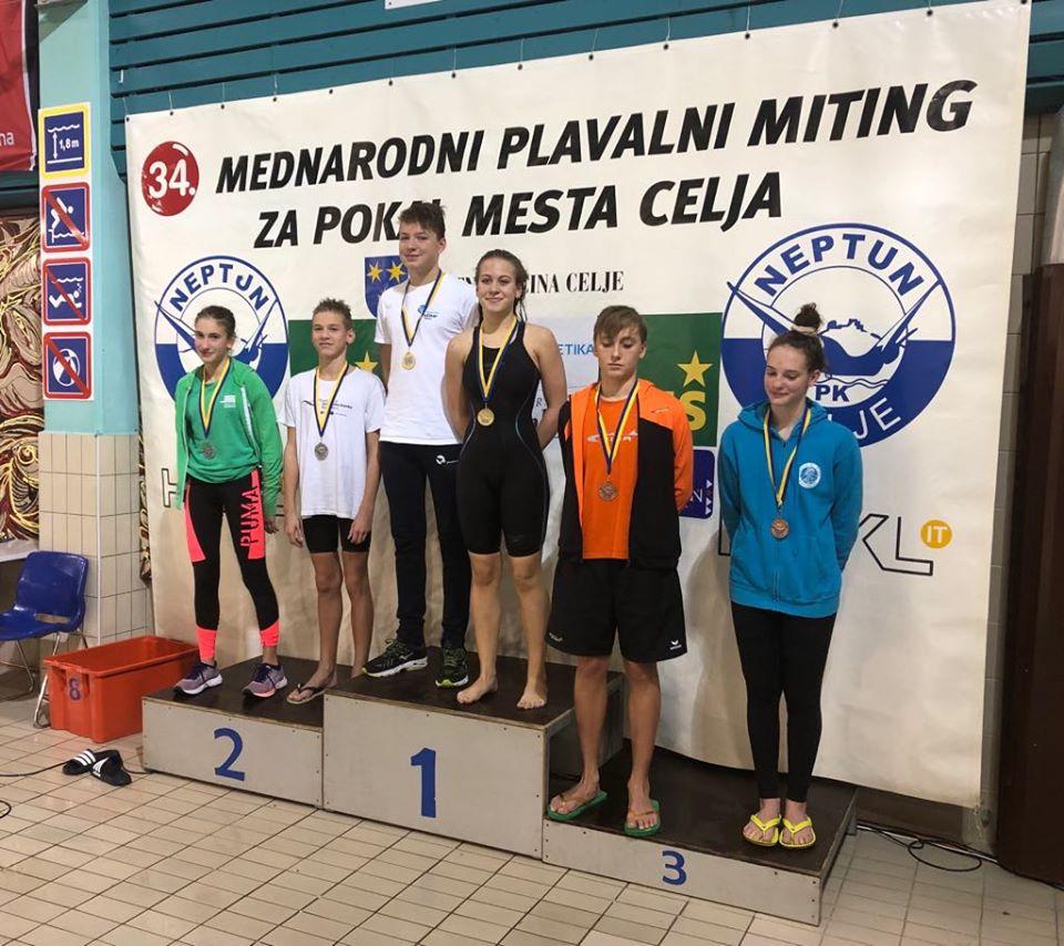 Najbolj uspešna je tokrat bila Šeglova, ki je na mednarodnem plavalnem mitingu v Celju zabeležila kar tri zmage, v disciplinah 100 metrov prosto ter na 50 in 200 metrov hrbtno.