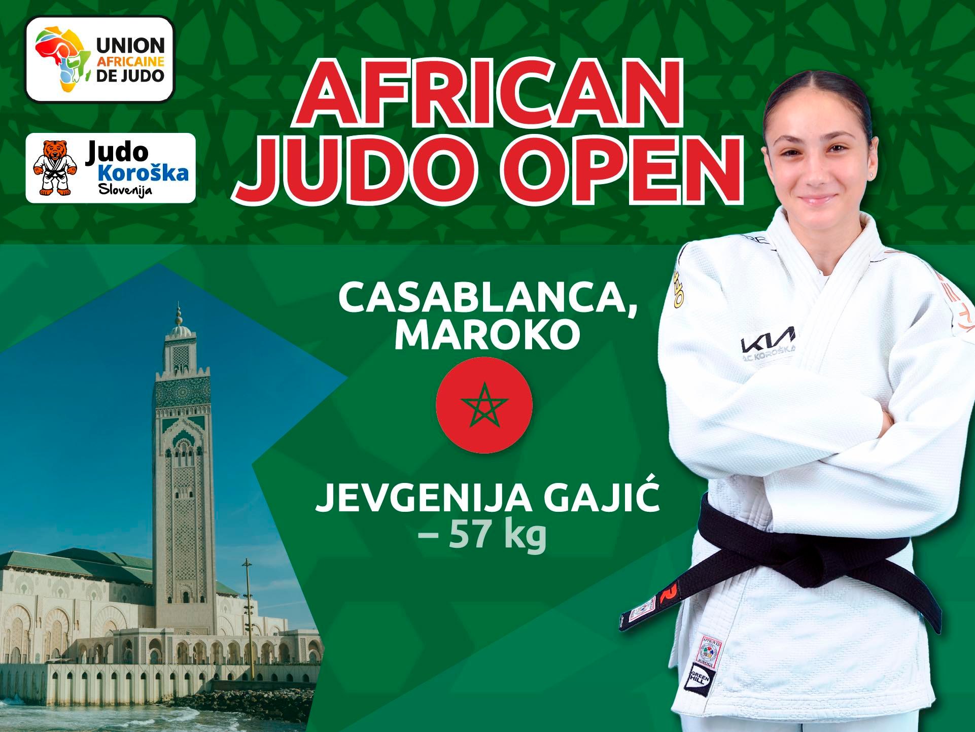 Že danes pa sledi nov velik izziv na mednarodnem prizorišču. Članica JK Slovenj Gradec, Jevgenija Gajić, bo nastopila na letošnji prvi mednarodni preizkušnji African Open Casablanca v Maroku. Tekmovala bo v kategoriji do 57 kg, kjer jo čaka močna mednarodna konkurenca.