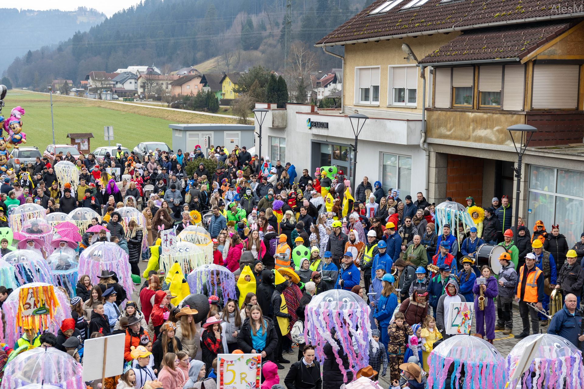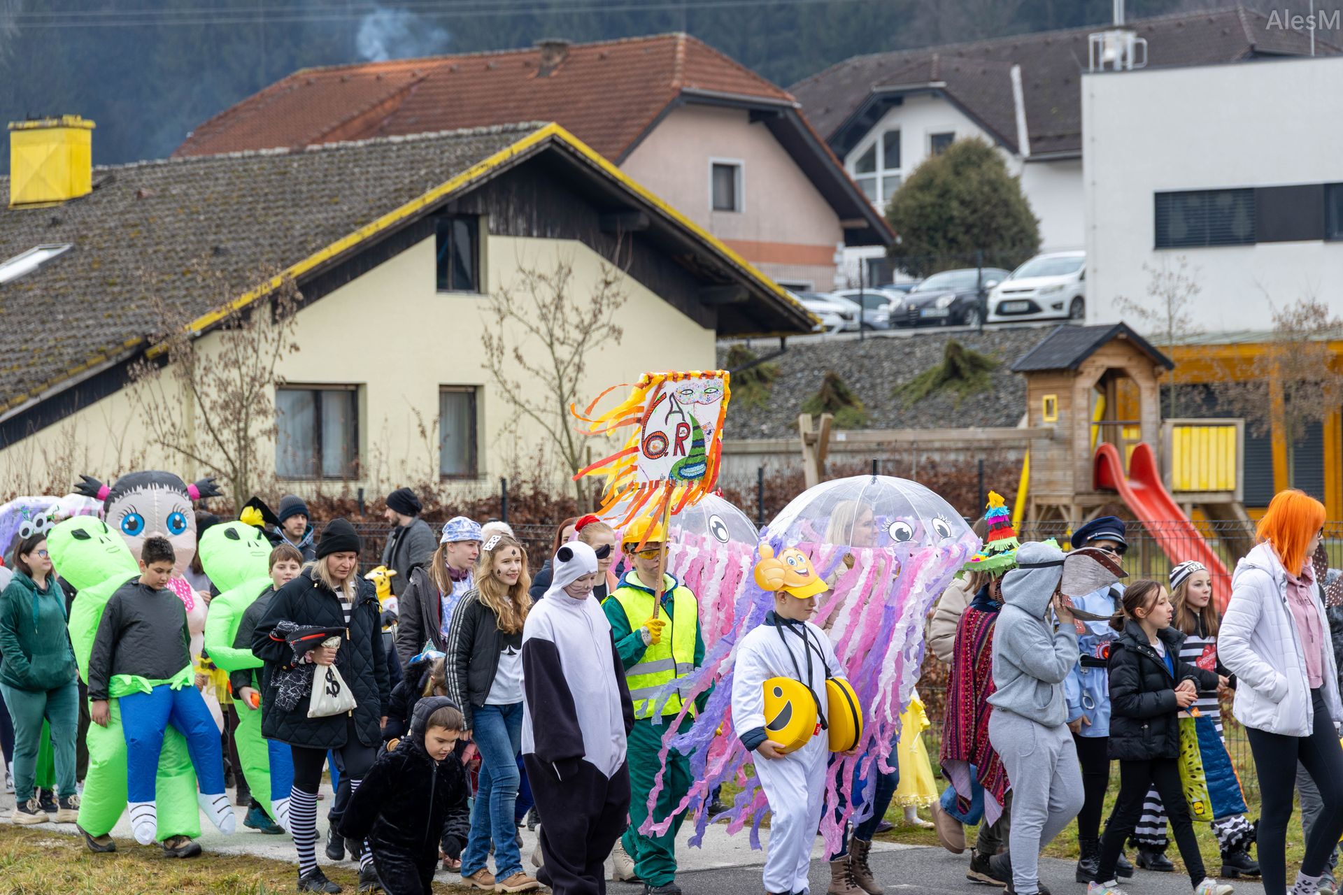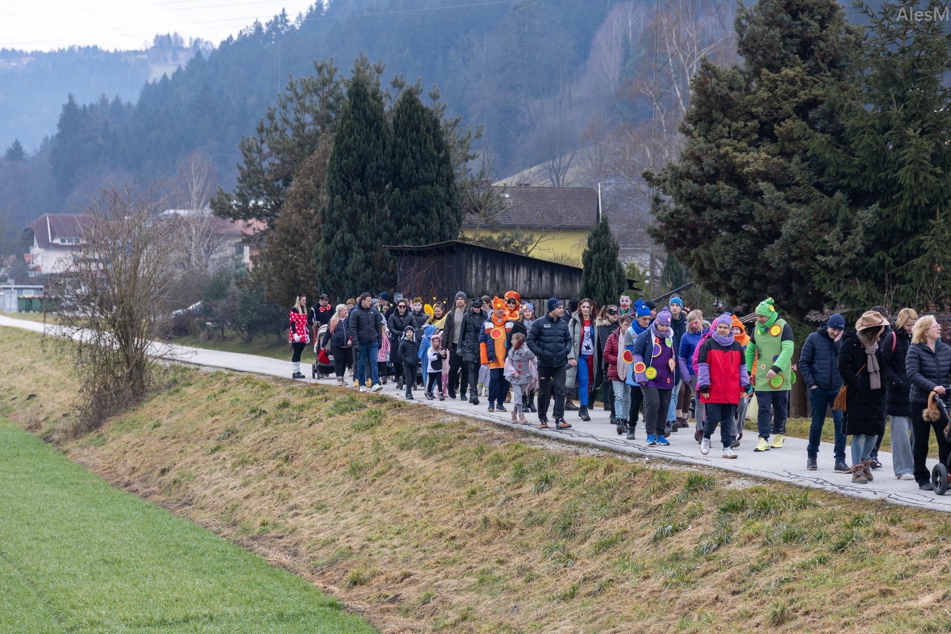 Po zboru se je pisana povorka podala skozi Šentjanž. Ob zvokih glasbe so maškare pritegnile poglede mimoidočih, ki so jih pozdravljali ob poti.