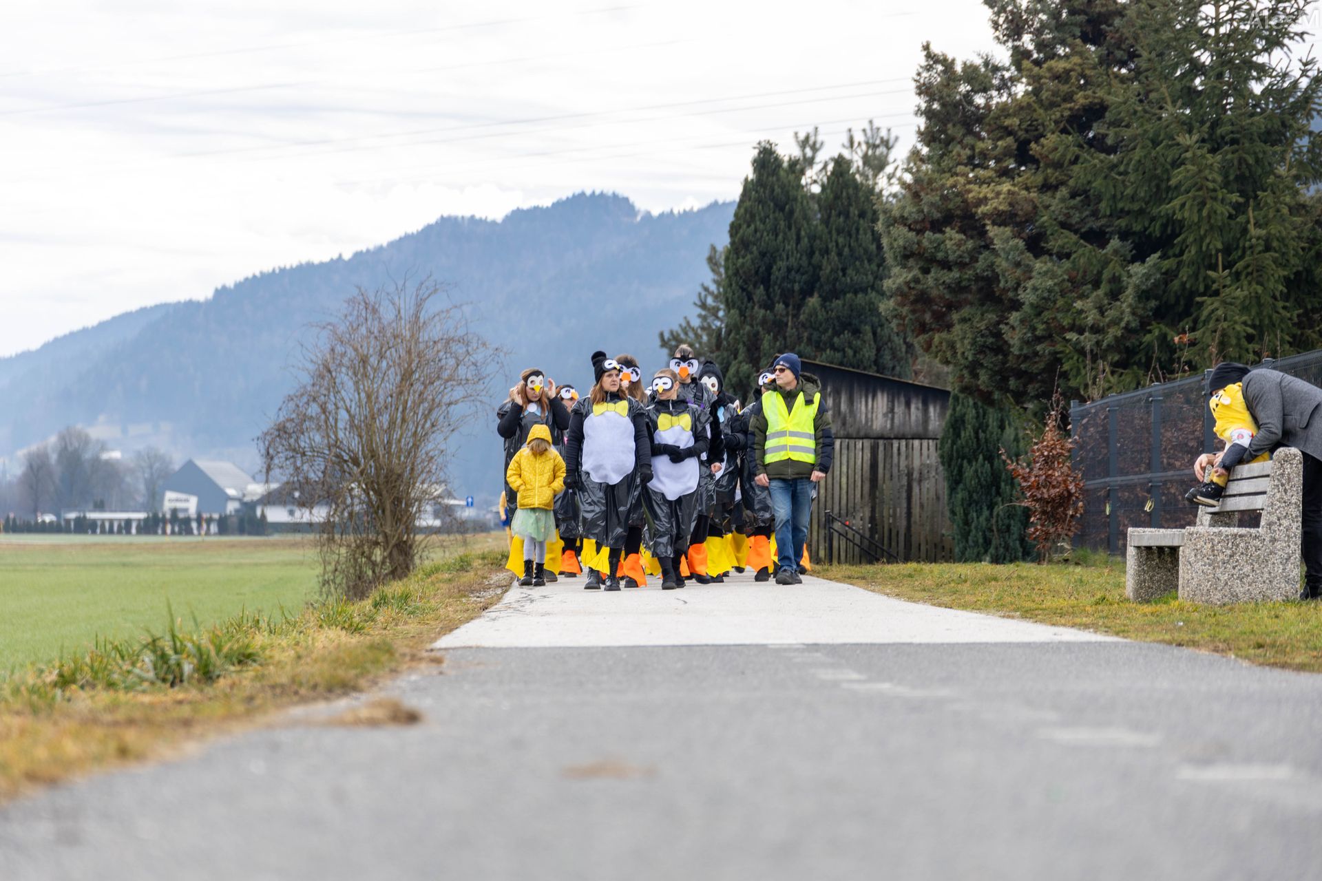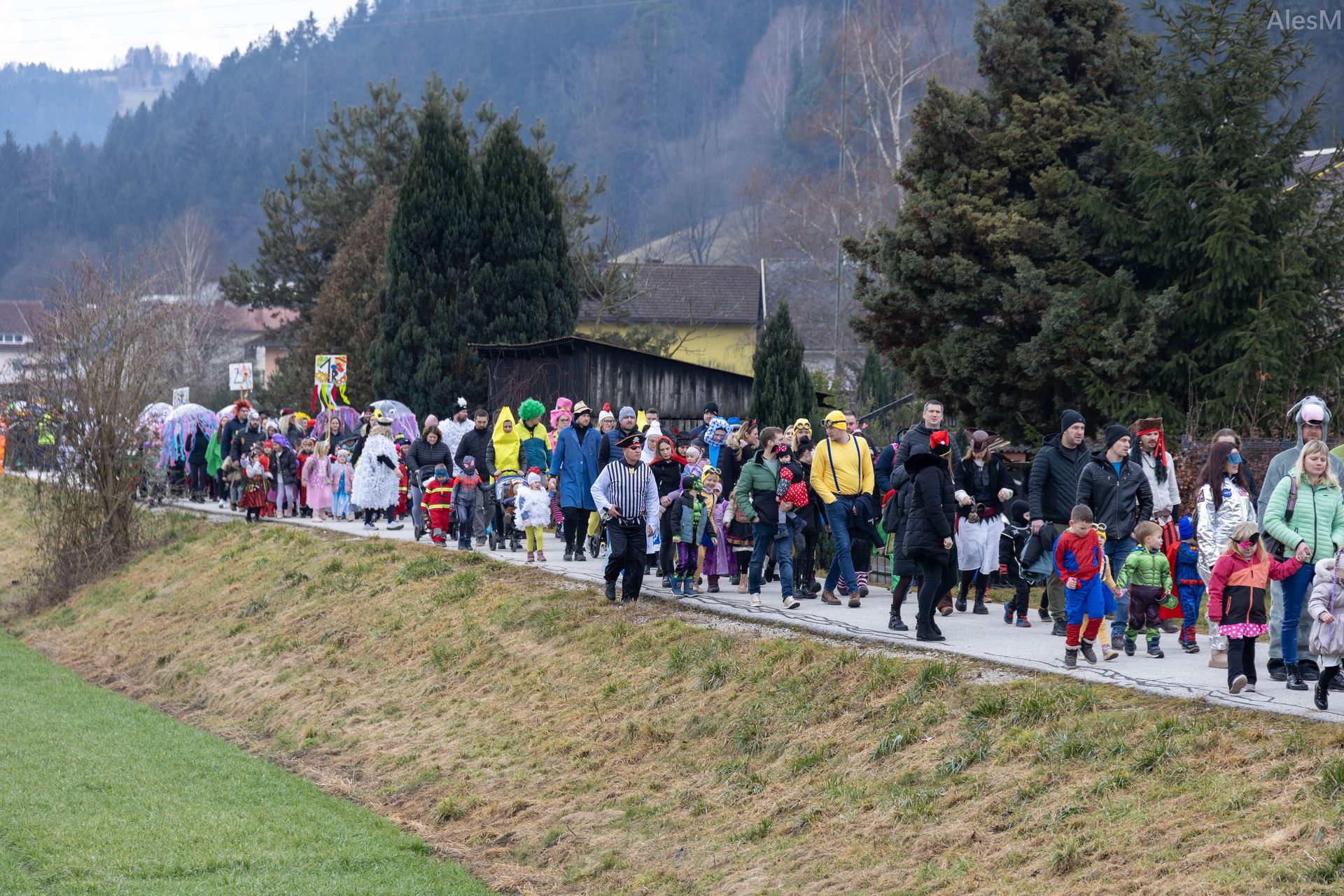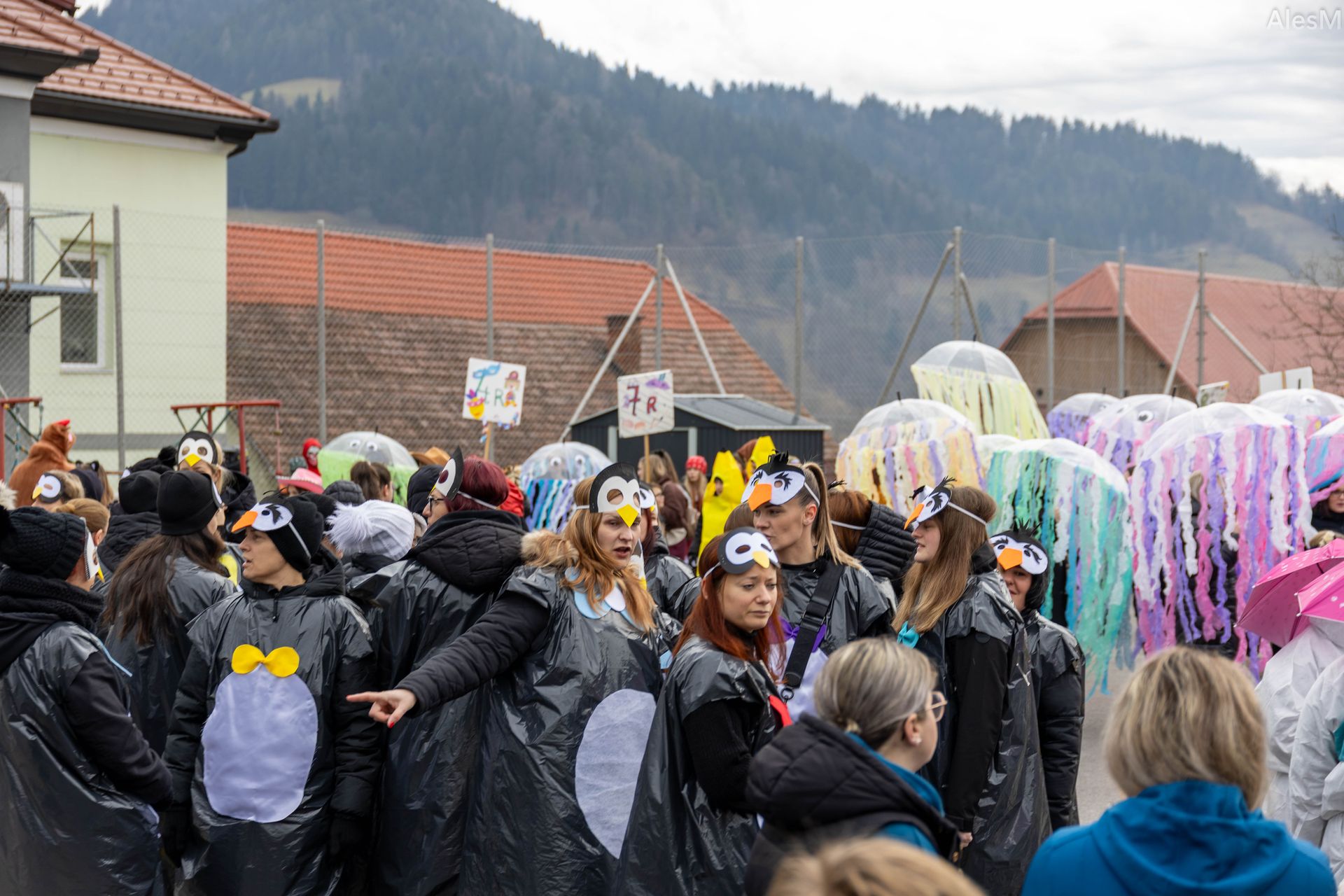 Po zboru se je pisana povorka podala skozi Šentjanž. Ob zvokih glasbe so maškare pritegnile poglede mimoidočih, ki so jih pozdravljali ob poti.