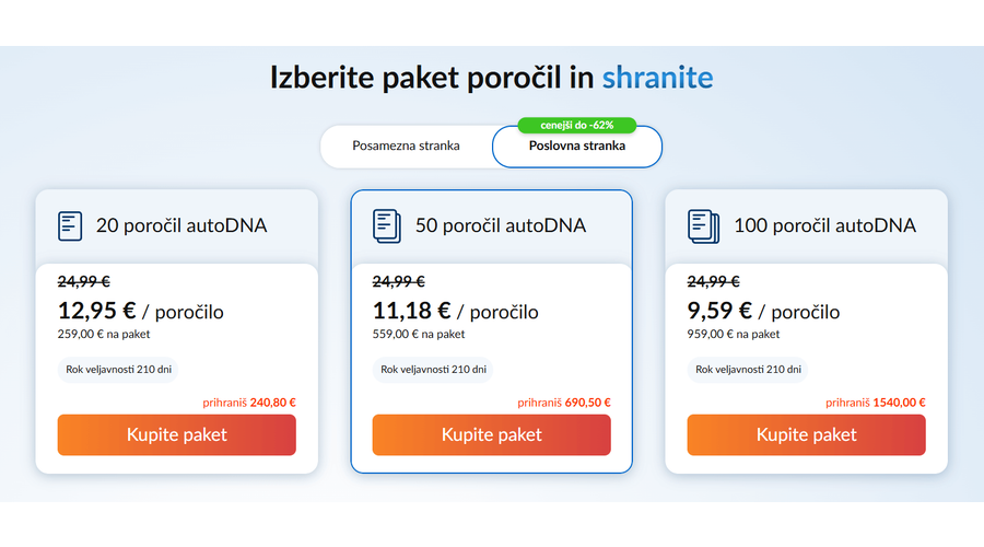 Rešitev so paketi autoDNA, na voljo v različicah 20, 50 in 100 poročil, ki olajšajo oblikovanje nabavnega poteka — od zbiranja ponudb do končnih odločitev.